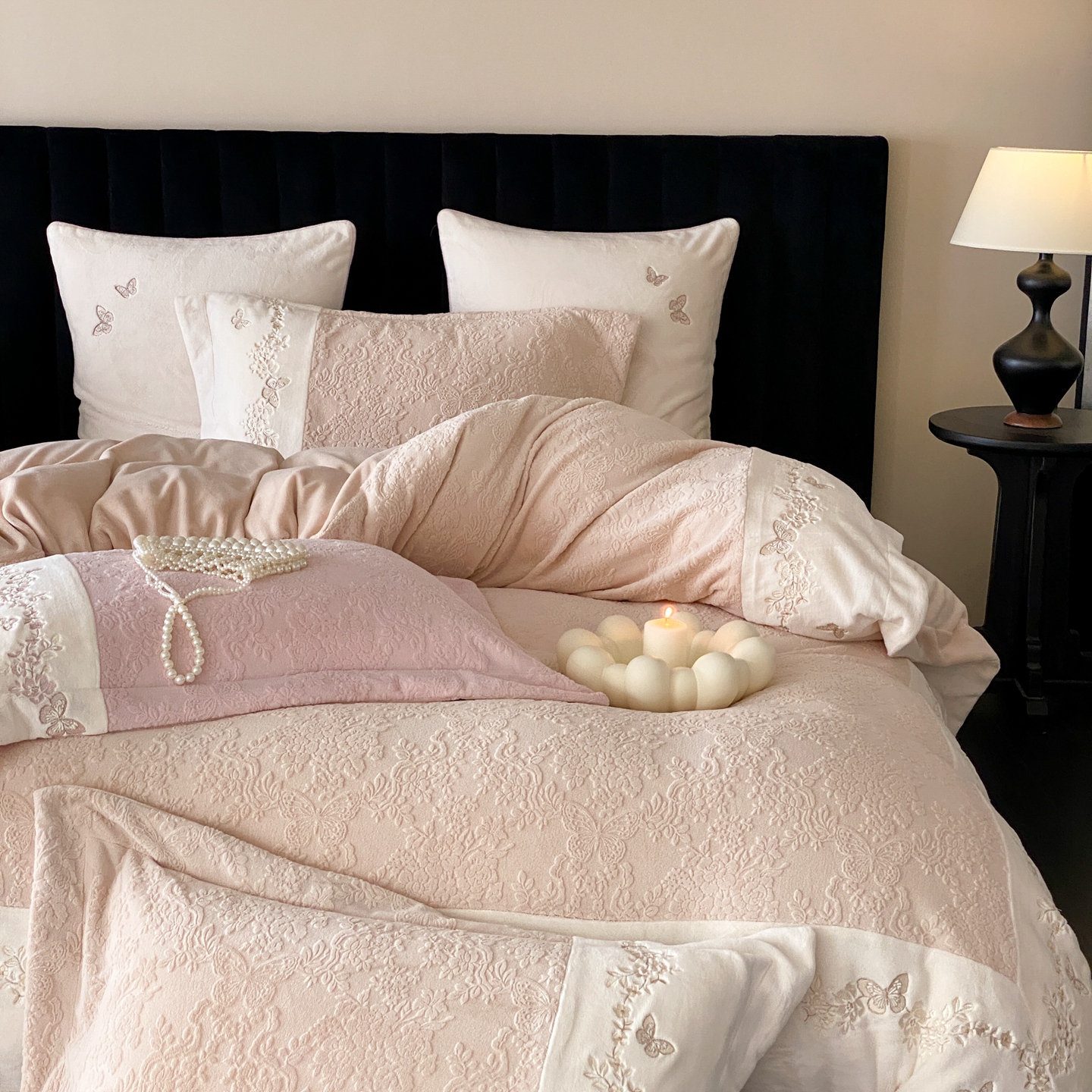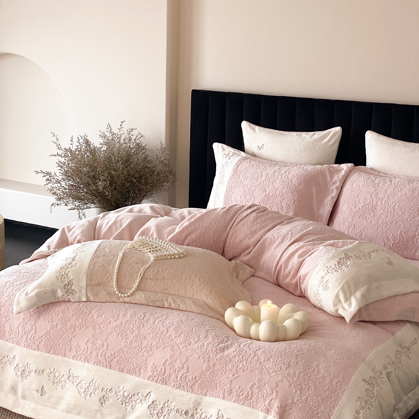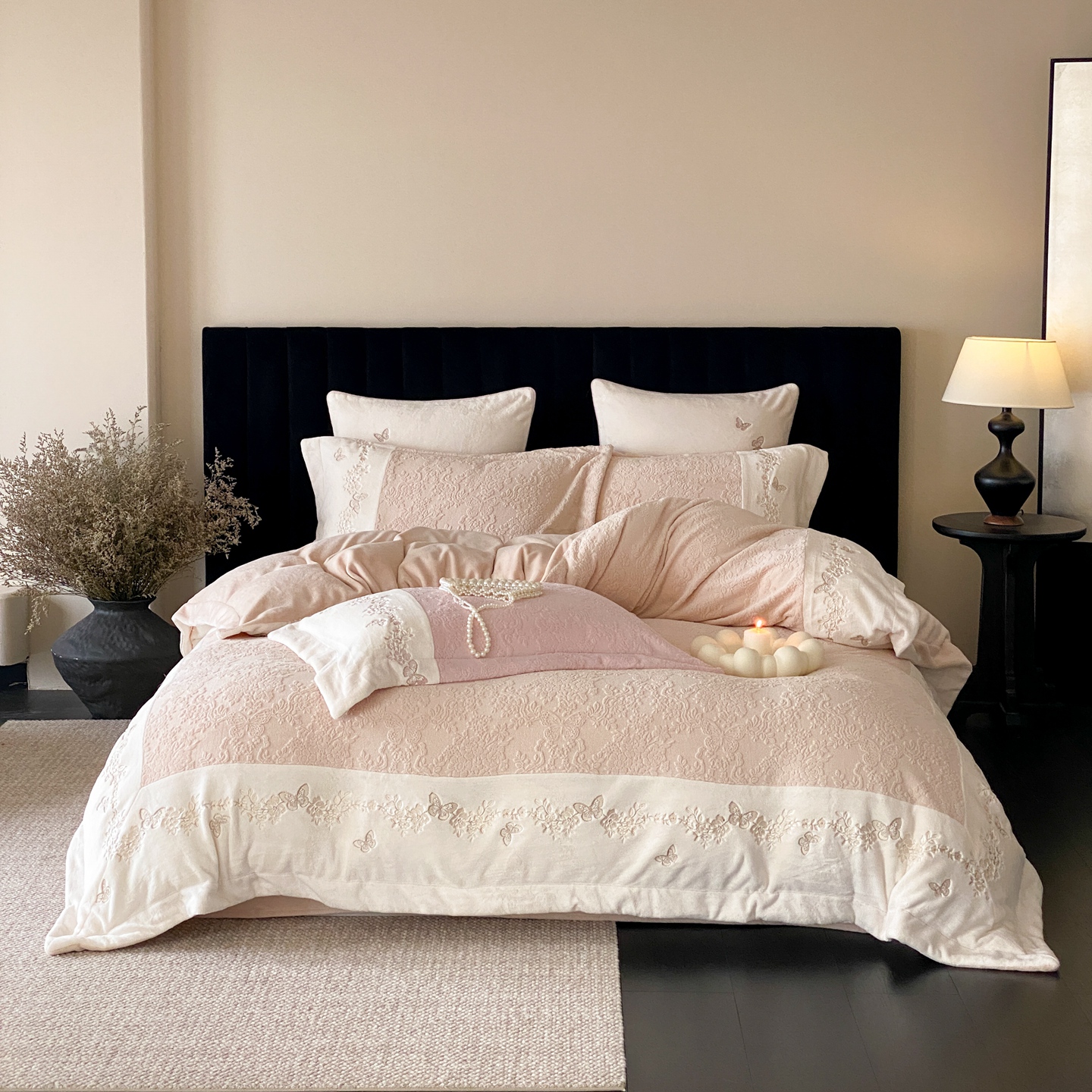 (总)MIU缪家居 2025新新款云锦绒牛奶绒四件套-赫妍,鎏金白,丝绒粉