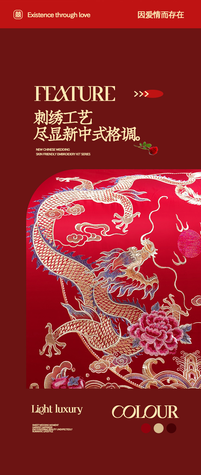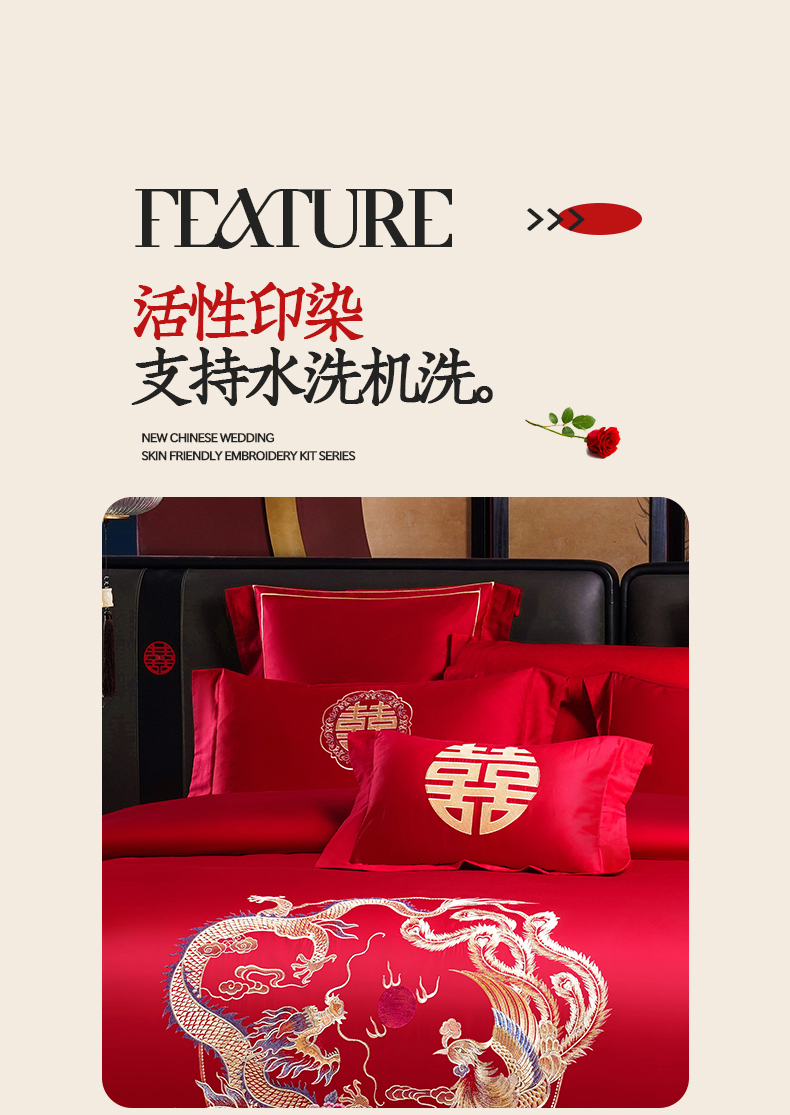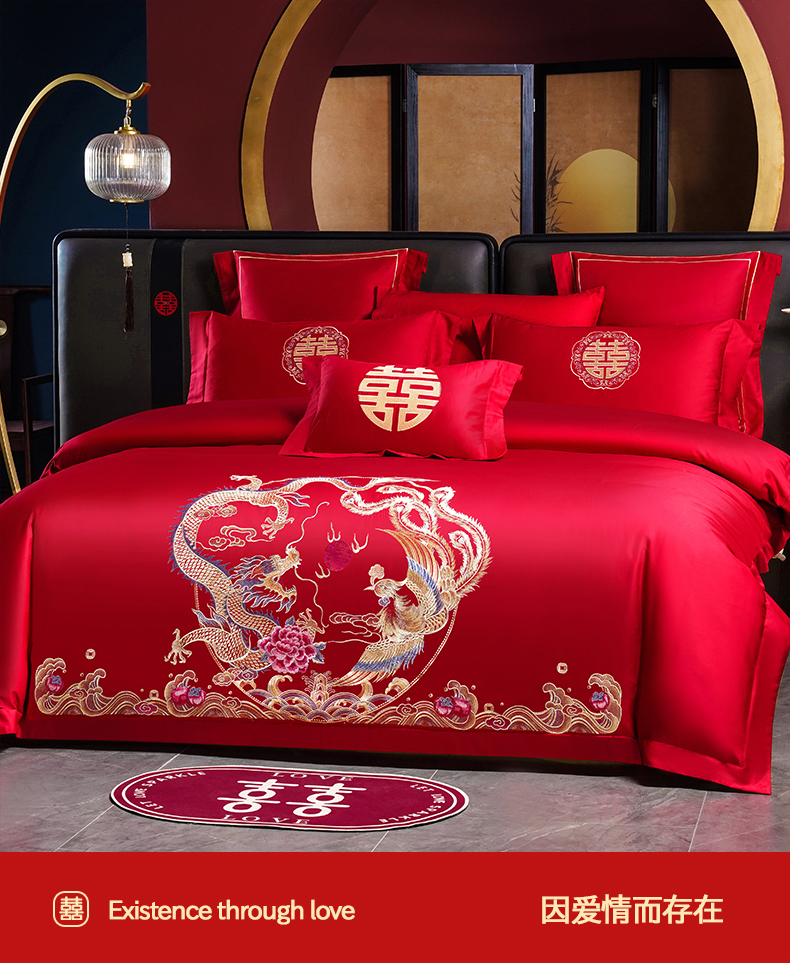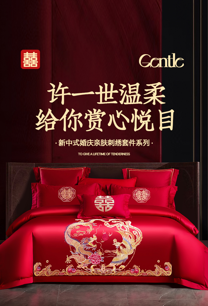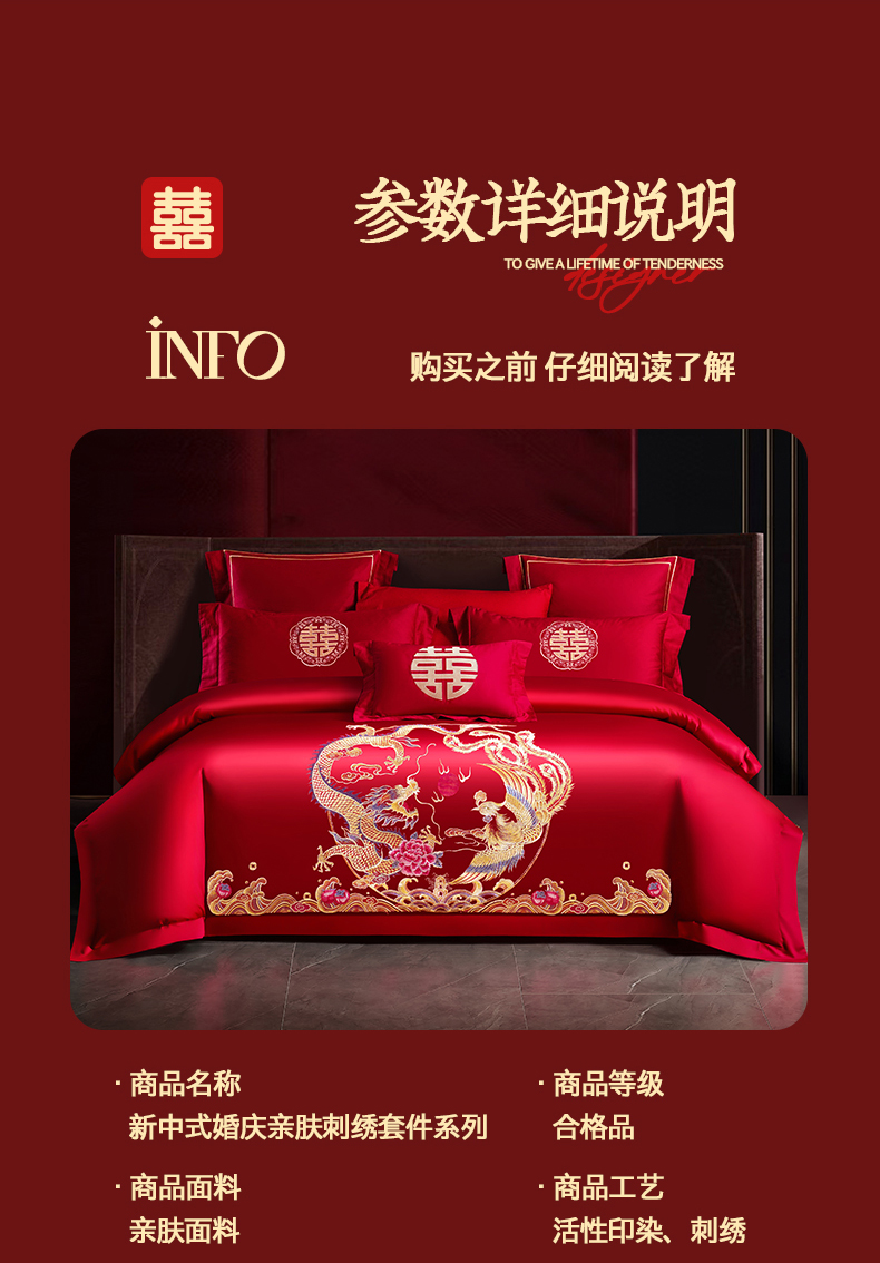 当前位置: 91家纺网 > 商品网购 > 床品套件 > 四件套 > 婚庆四件套 > 置顶家纺 2025新款新中式婚庆亲肤刺绣四件套 万事兴龙-大红