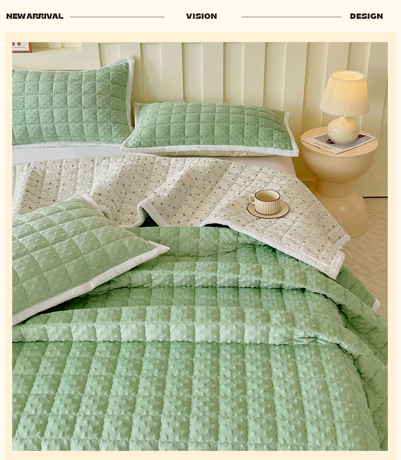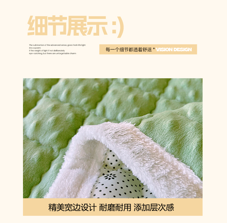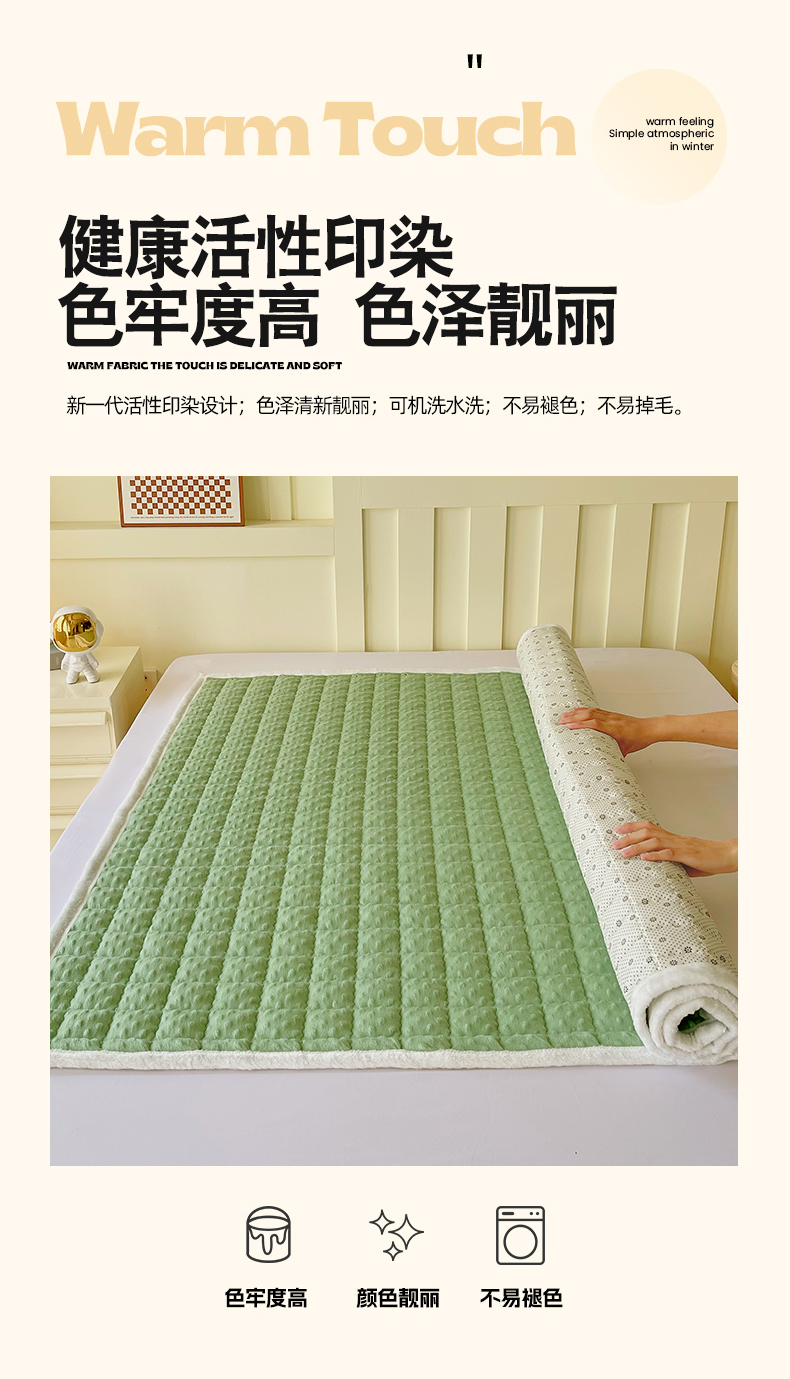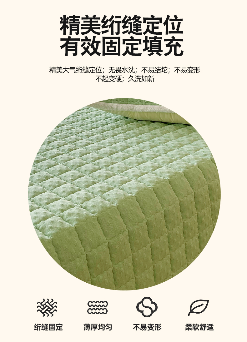 当前位置: 91家纺网 > 商品网购 > 床垫/床褥 > 普通床垫 > 金鑫汇家纺 2025秋冬纯色豆豆绒床褥垫系列-加大床 加大床豆豆绒床褥垫绿色