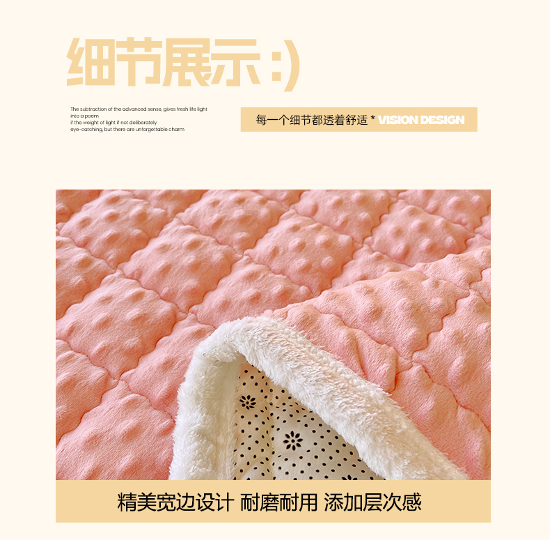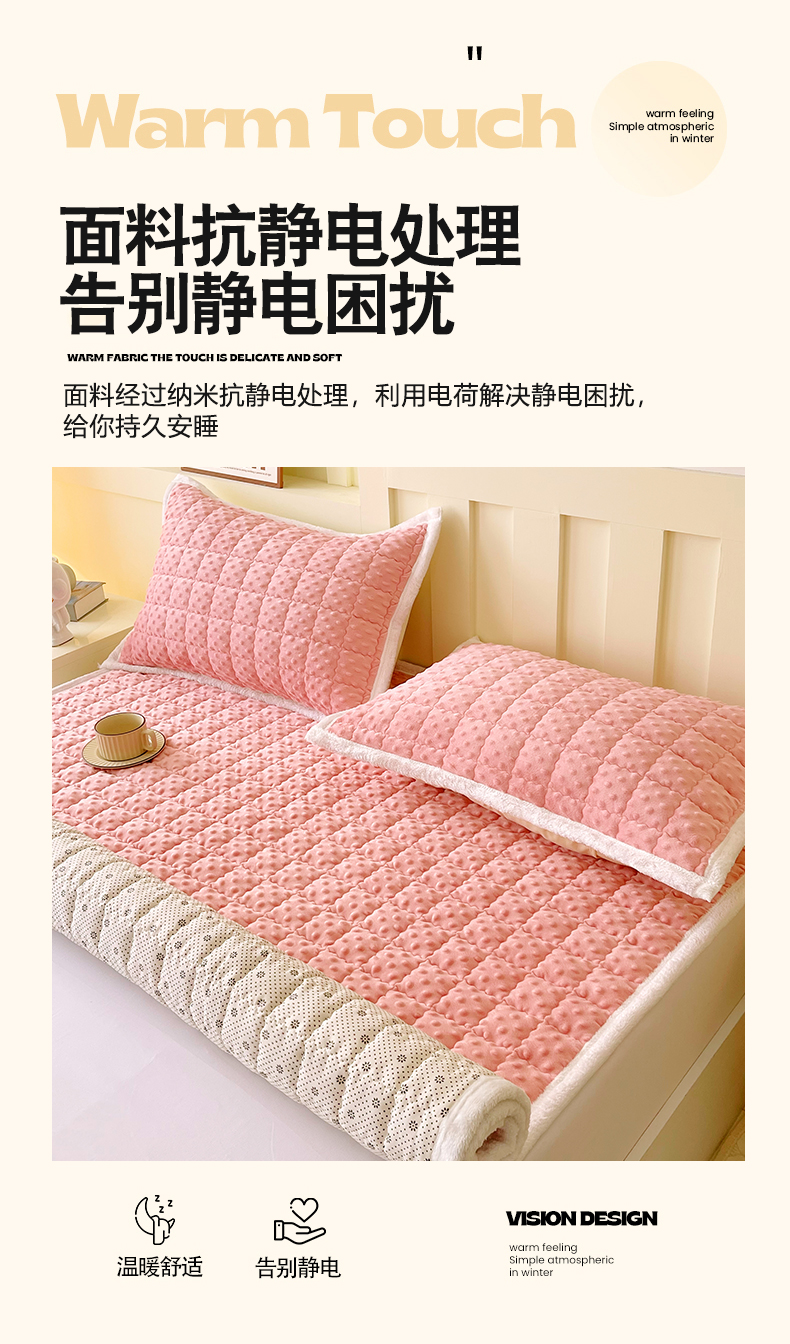 当前位置: 91家纺网 > 商品网购 > 床垫/床褥 > 普通床垫 > 金鑫汇家纺 2025秋冬纯色豆豆绒床褥垫系列-成人床 成人床豆豆绒床褥垫粉色