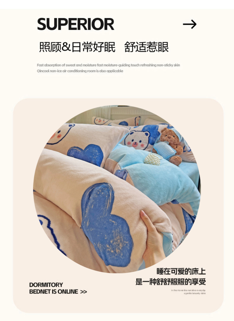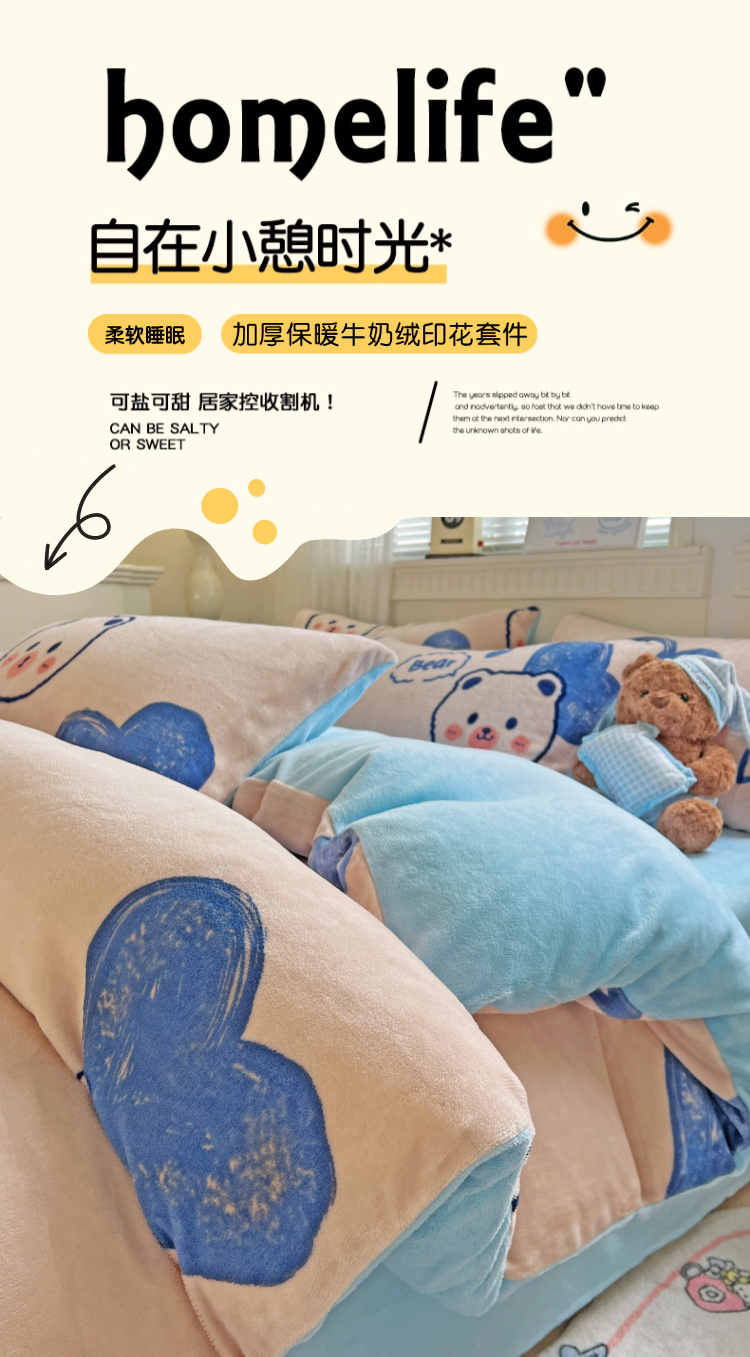 当前位置: 91家纺网 > 商品网购 > 床品套件 > 四件套 > 牛奶绒四件套 > 维娜斯家纺 2025新款牛奶绒印花四件套加厚保暖 魅力小熊