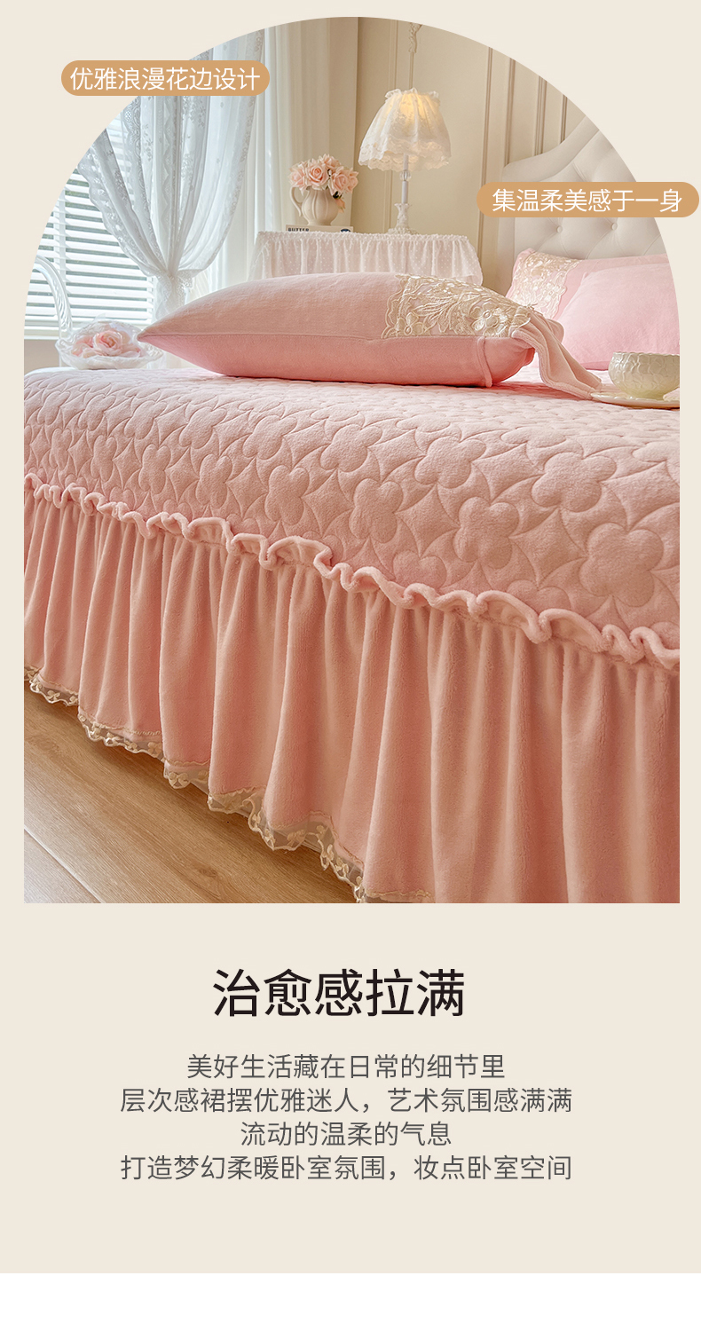 (总)网红馆(ck家纺) 2025新款高克重牛奶绒单床裙 床裙单件卡妮娜系列,卡妮娜-粉色,卡妮娜-灰色,卡妮娜-卡其,卡妮娜-绿色,卡妮娜-米色