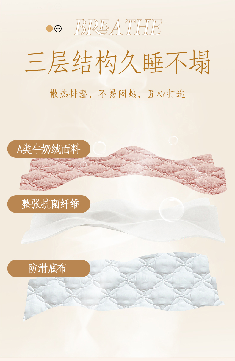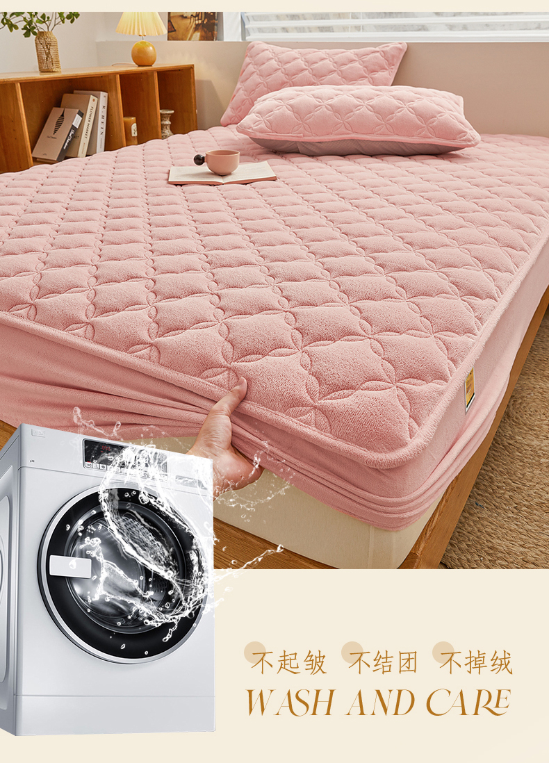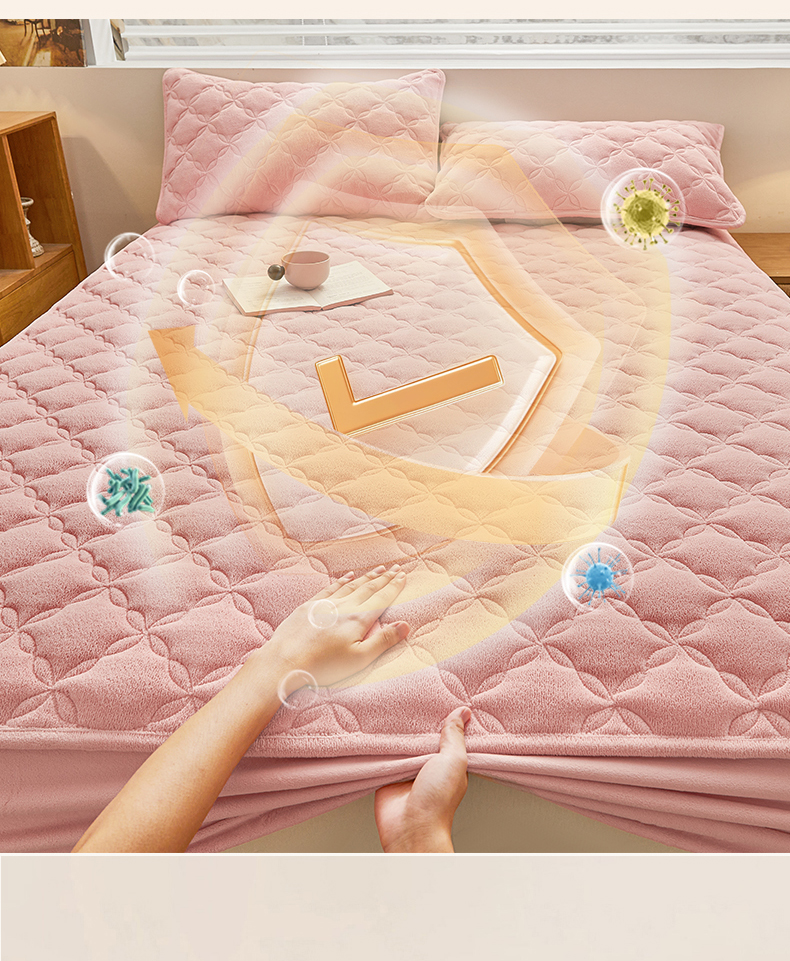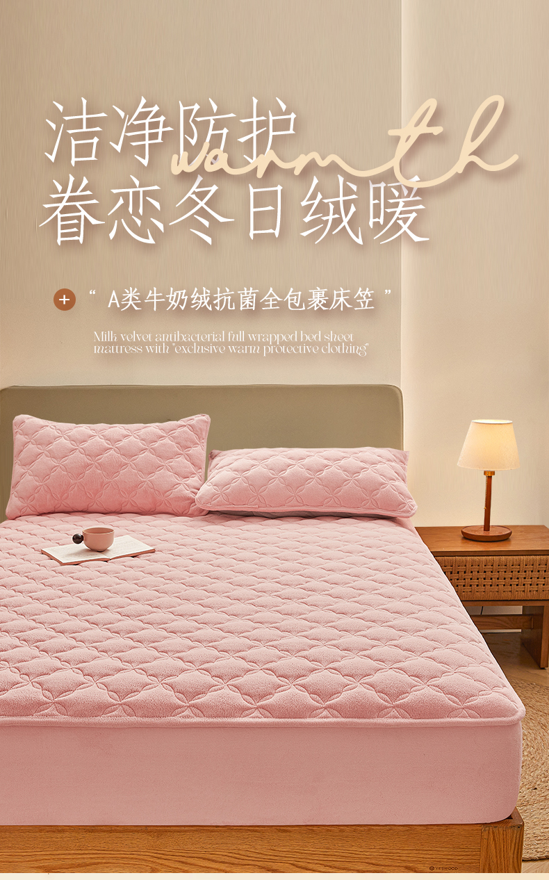 商品名称:布卢姆床垫 2025新款A类抗菌牛奶绒床笠 菱格-粉玉
