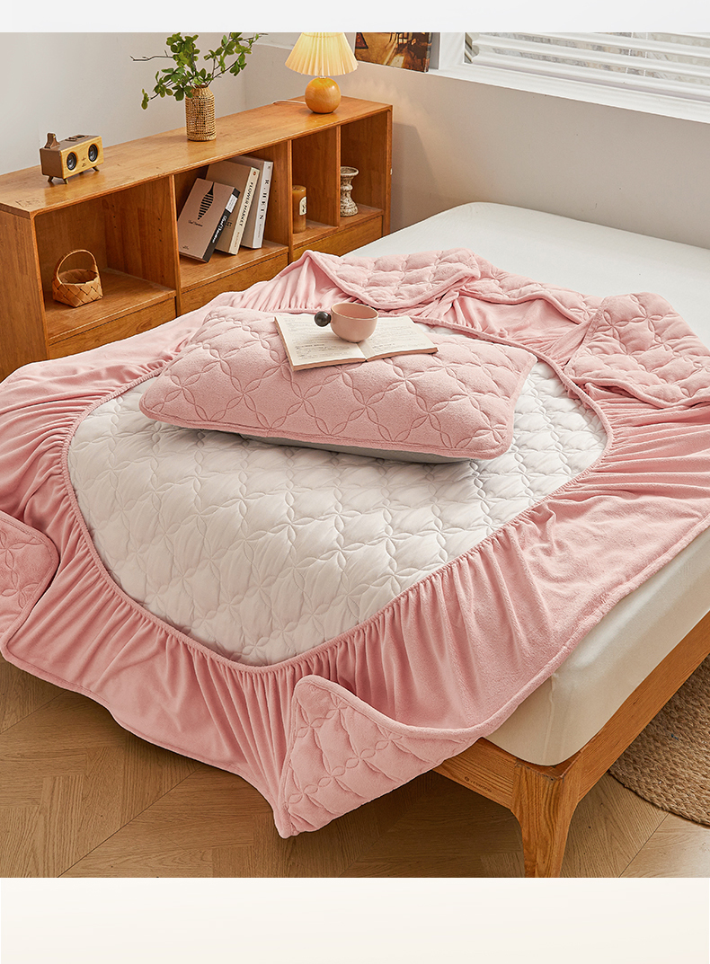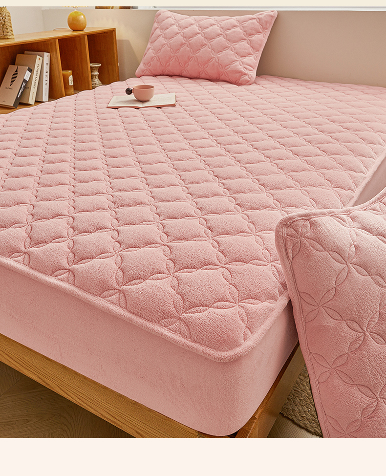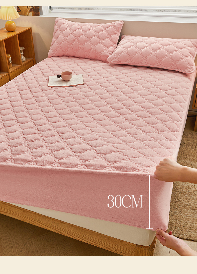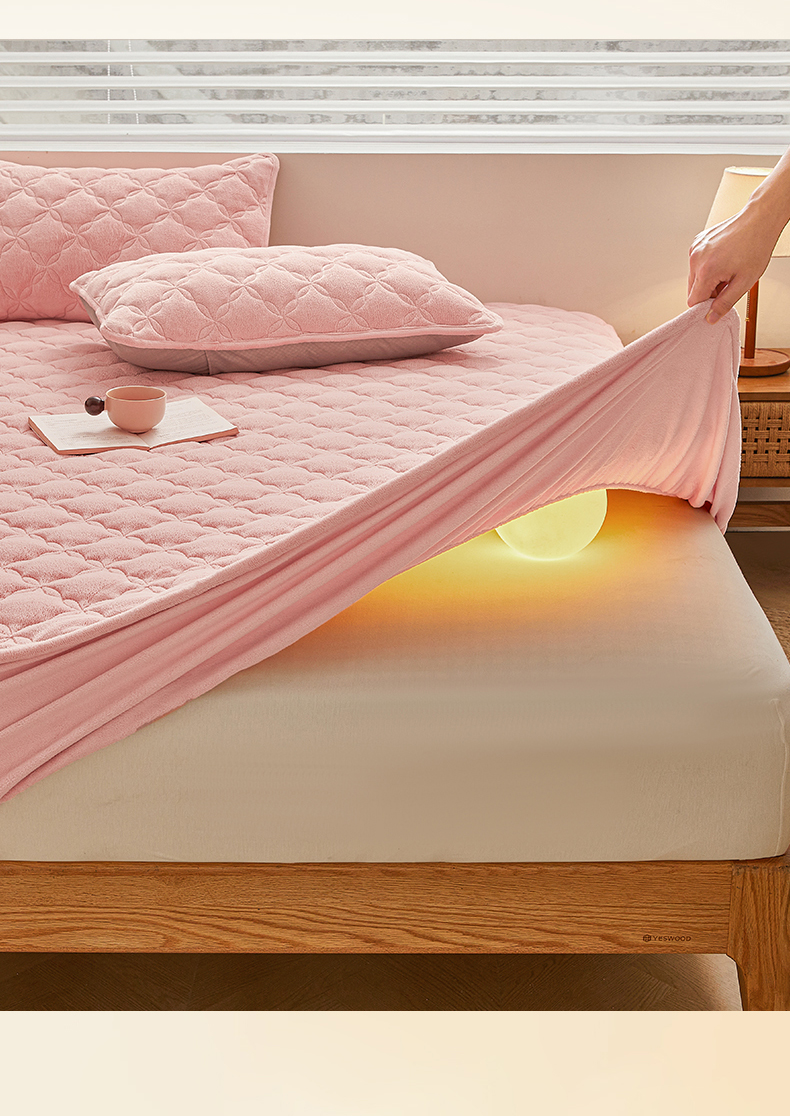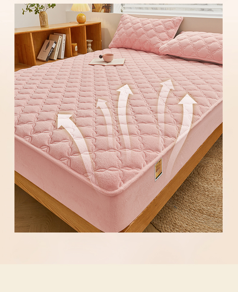 布卢姆床垫 2025新款A类抗菌牛奶绒床笠 菱格-粉玉