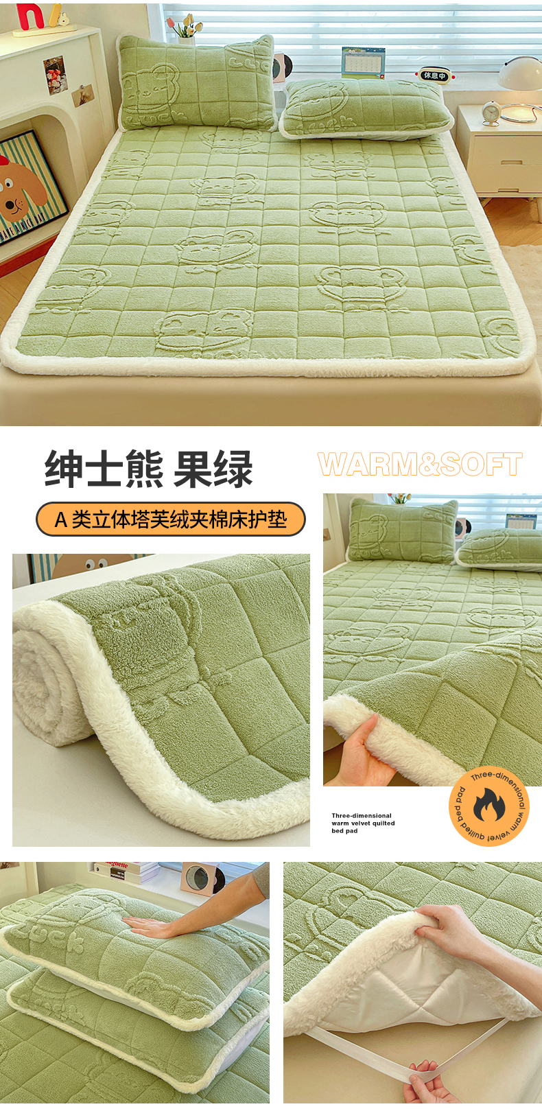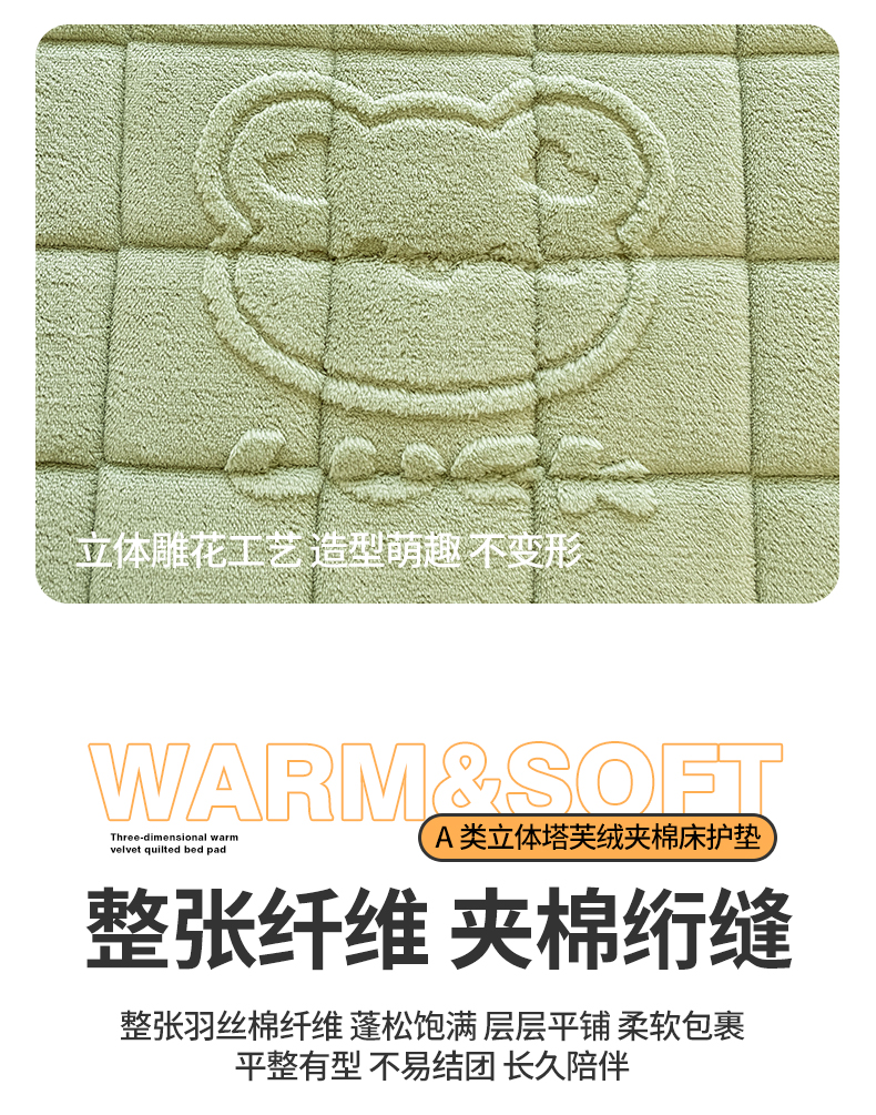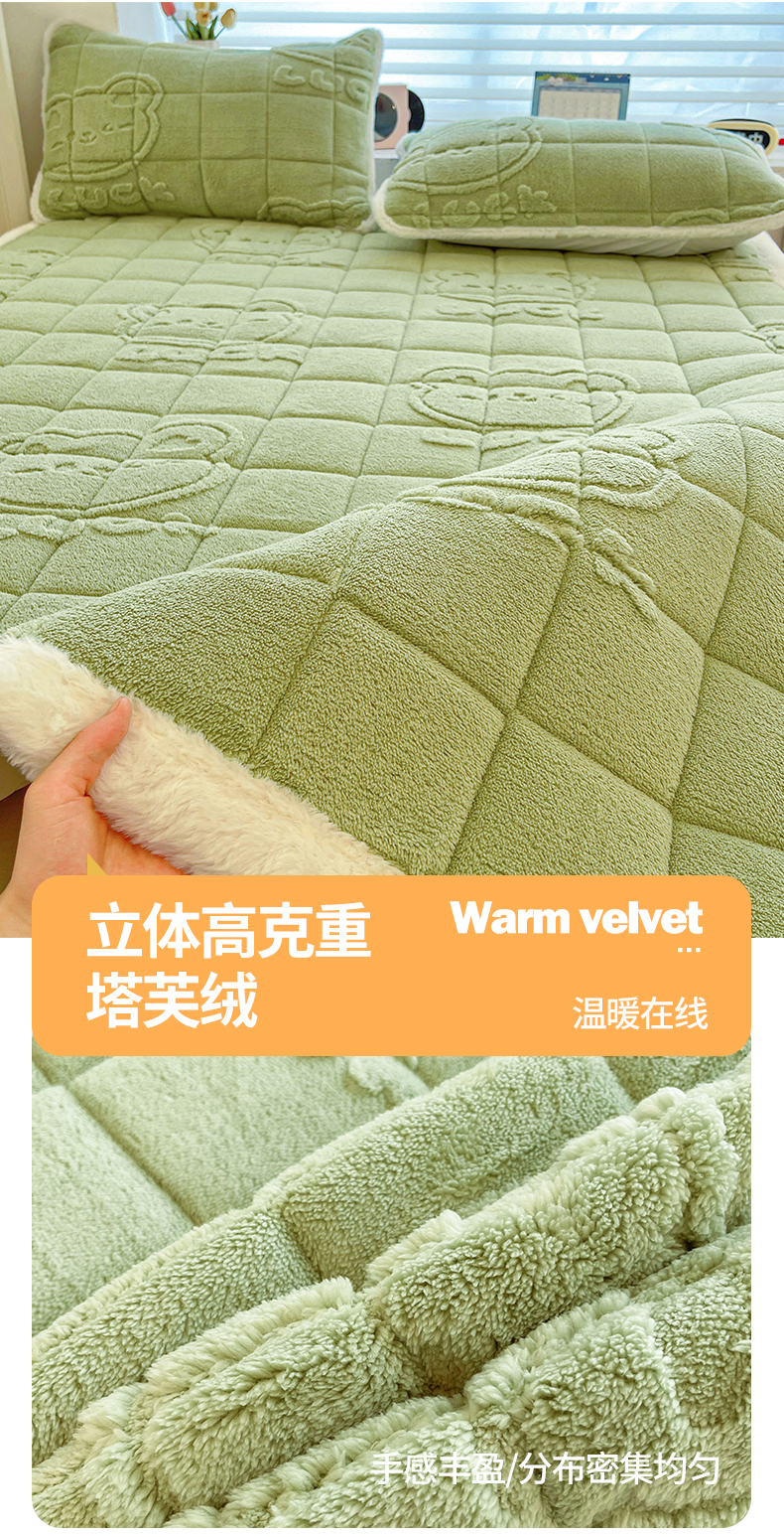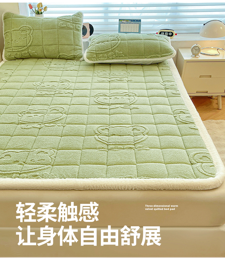 商品名称:予梦家纺 2025新款加厚塔芙绒床垫床褥床护垫(带卖点图和买家秀) 绅士熊 果绿