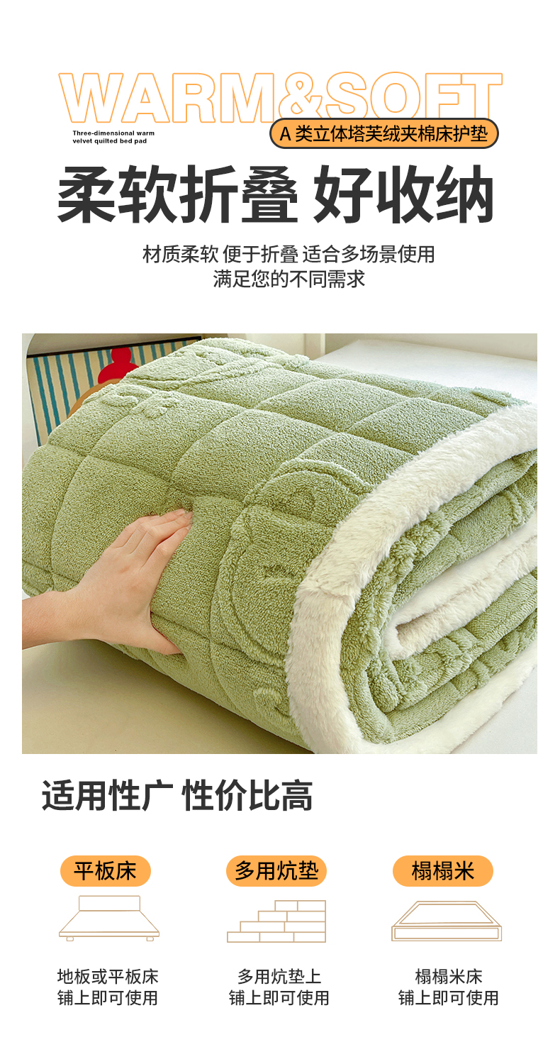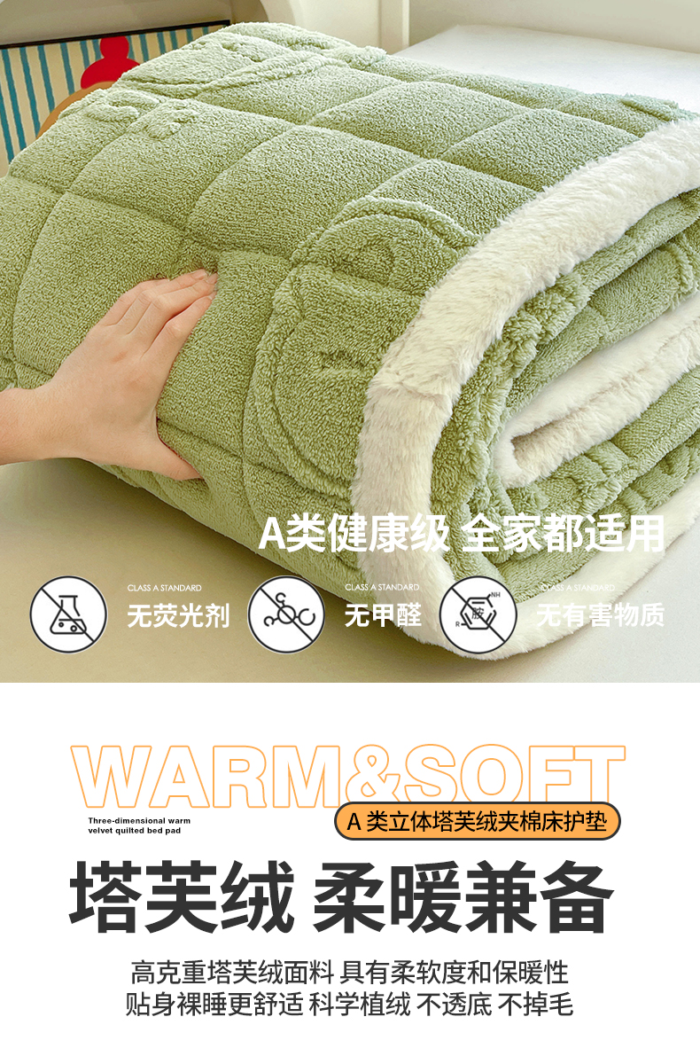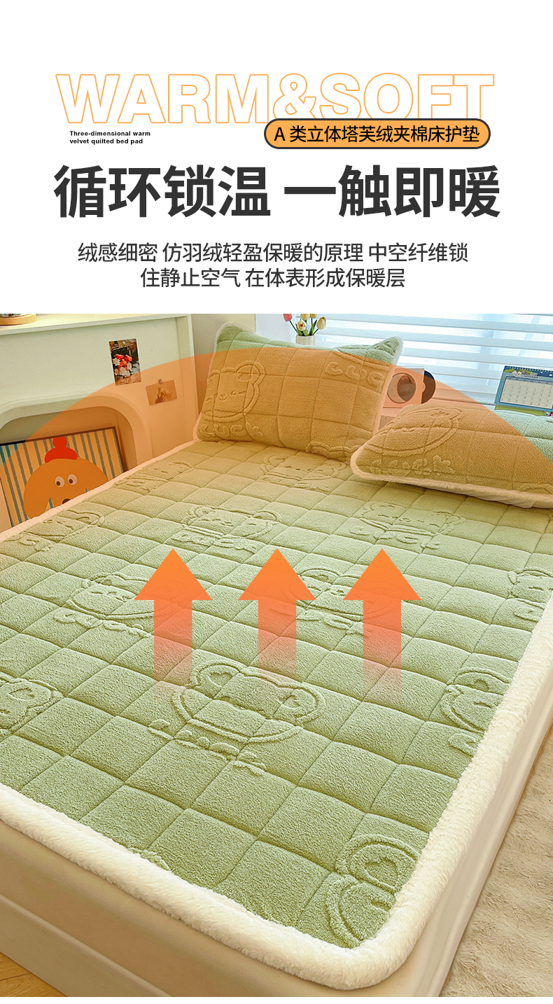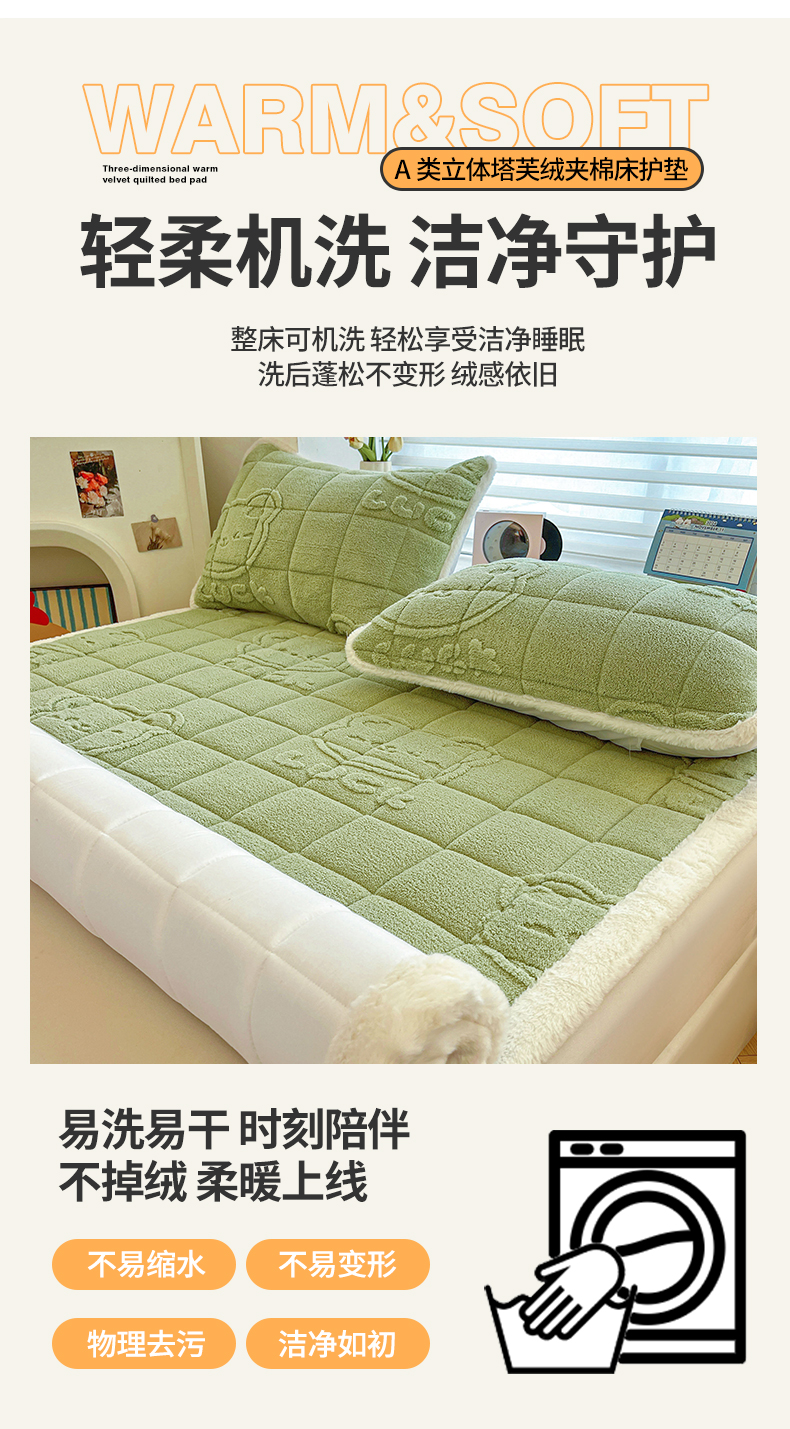 商品名称:予梦家纺 2025新款加厚塔芙绒床垫床褥床护垫(带卖点图和买家秀) 绅士熊 果绿