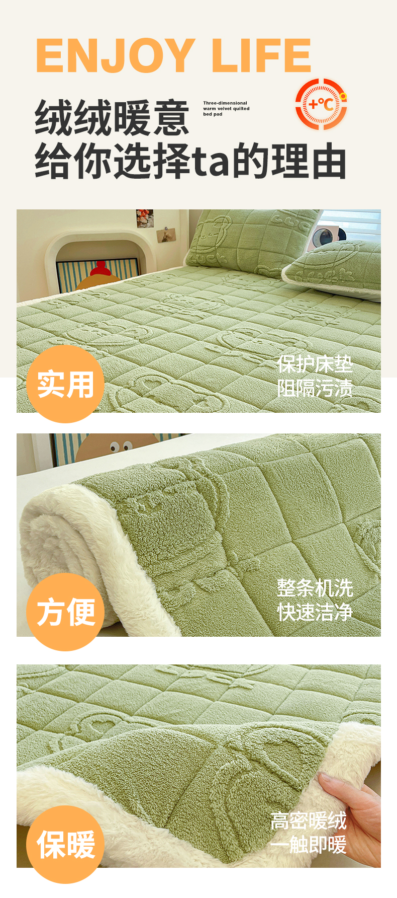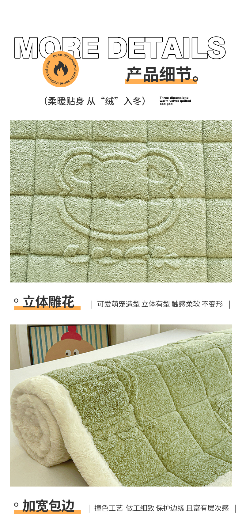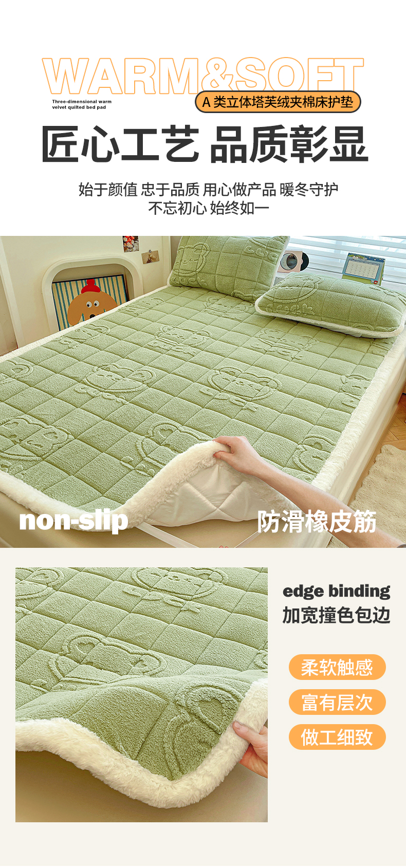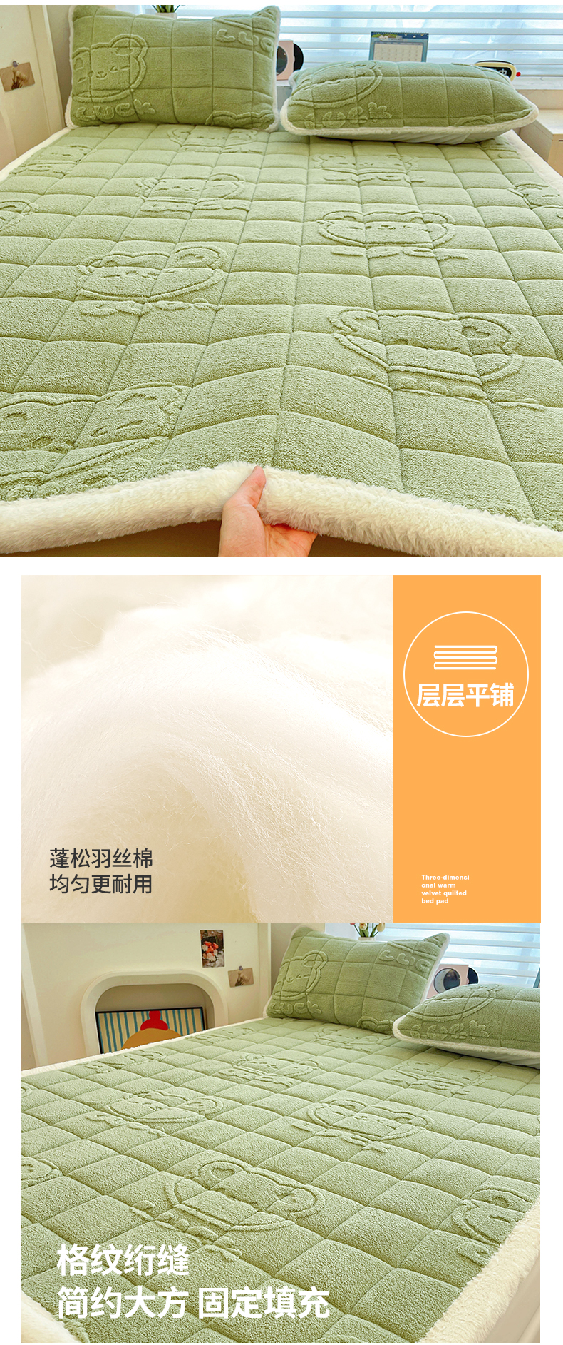 商品名称:予梦家纺 2025新款加厚塔芙绒床垫床褥床护垫(带卖点图和买家秀) 绅士熊 果绿