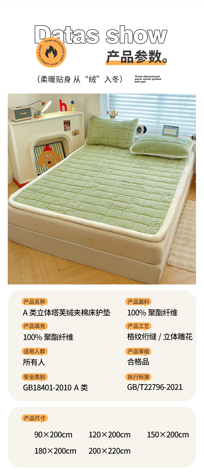 (总)予梦家纺 2025新款塔芙绒床护垫床垫保护套,萌萌熊 苍蓝,萌萌熊 果绿,萌萌熊 卡其,萌萌熊 星灰,星梦格 苍蓝,星梦格 果绿,星梦格 卡其,星梦格 星灰