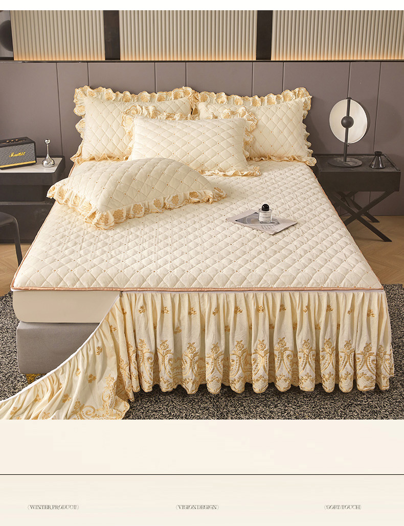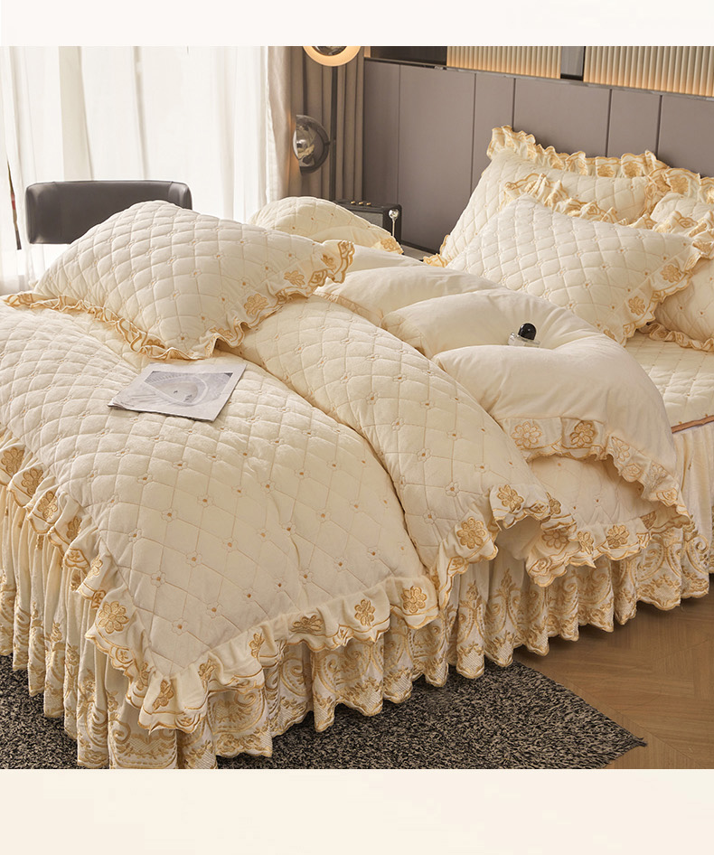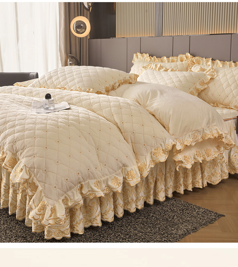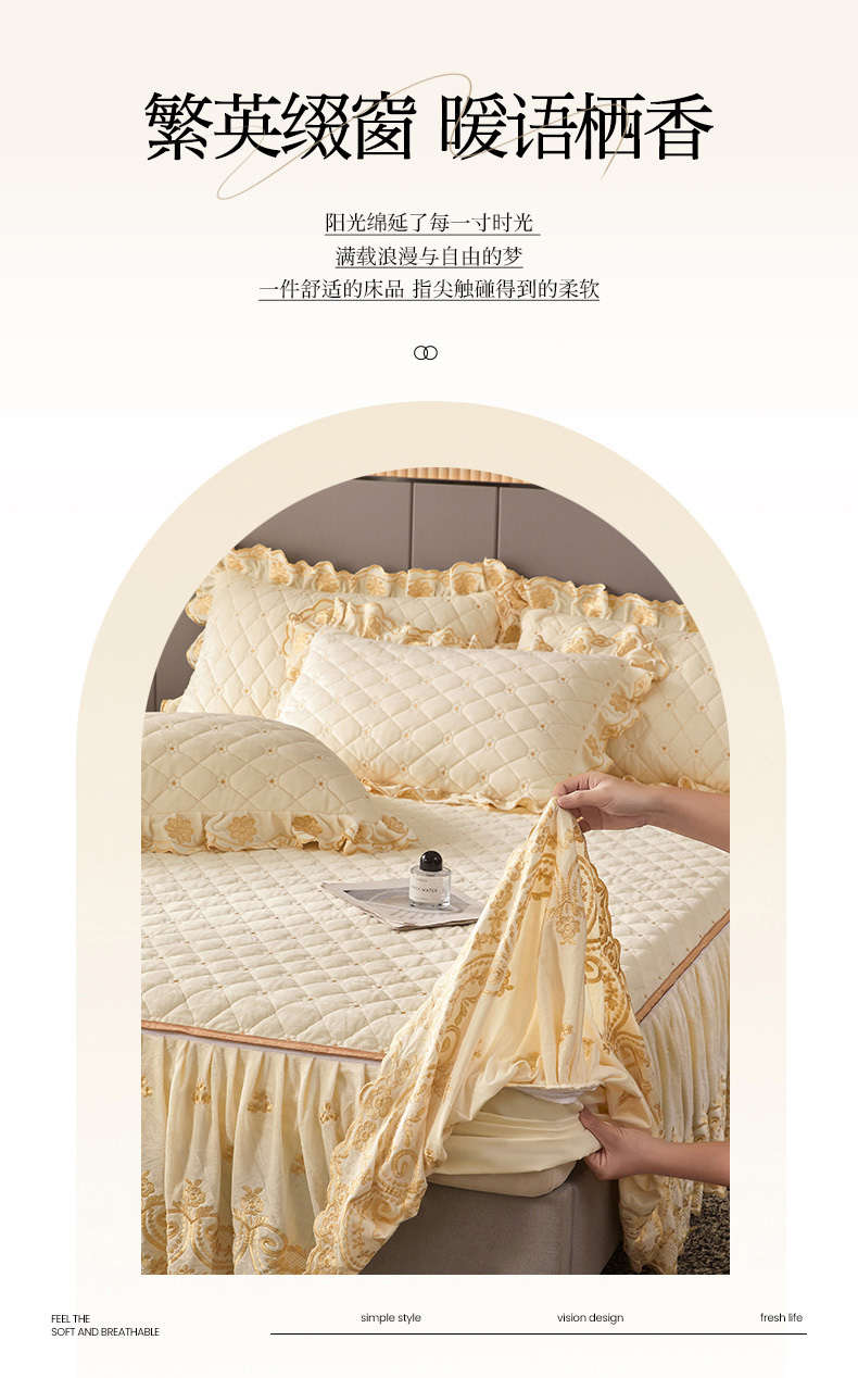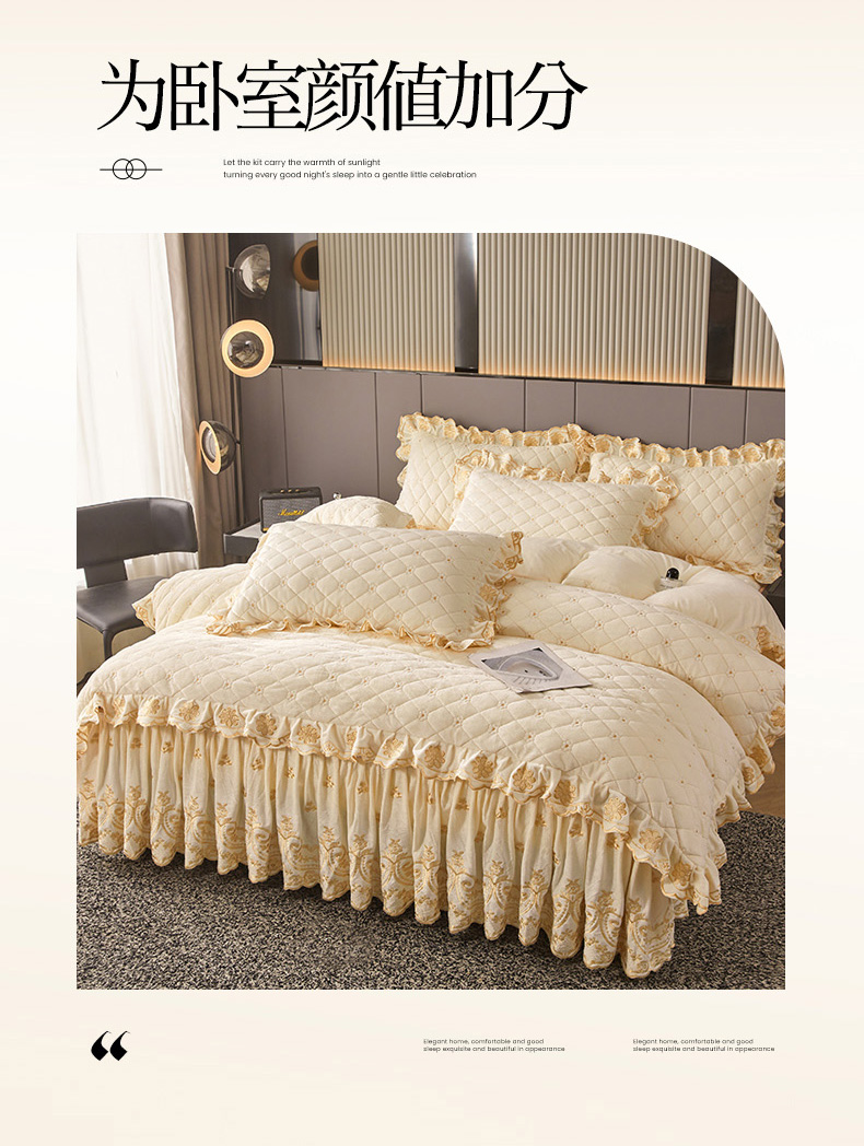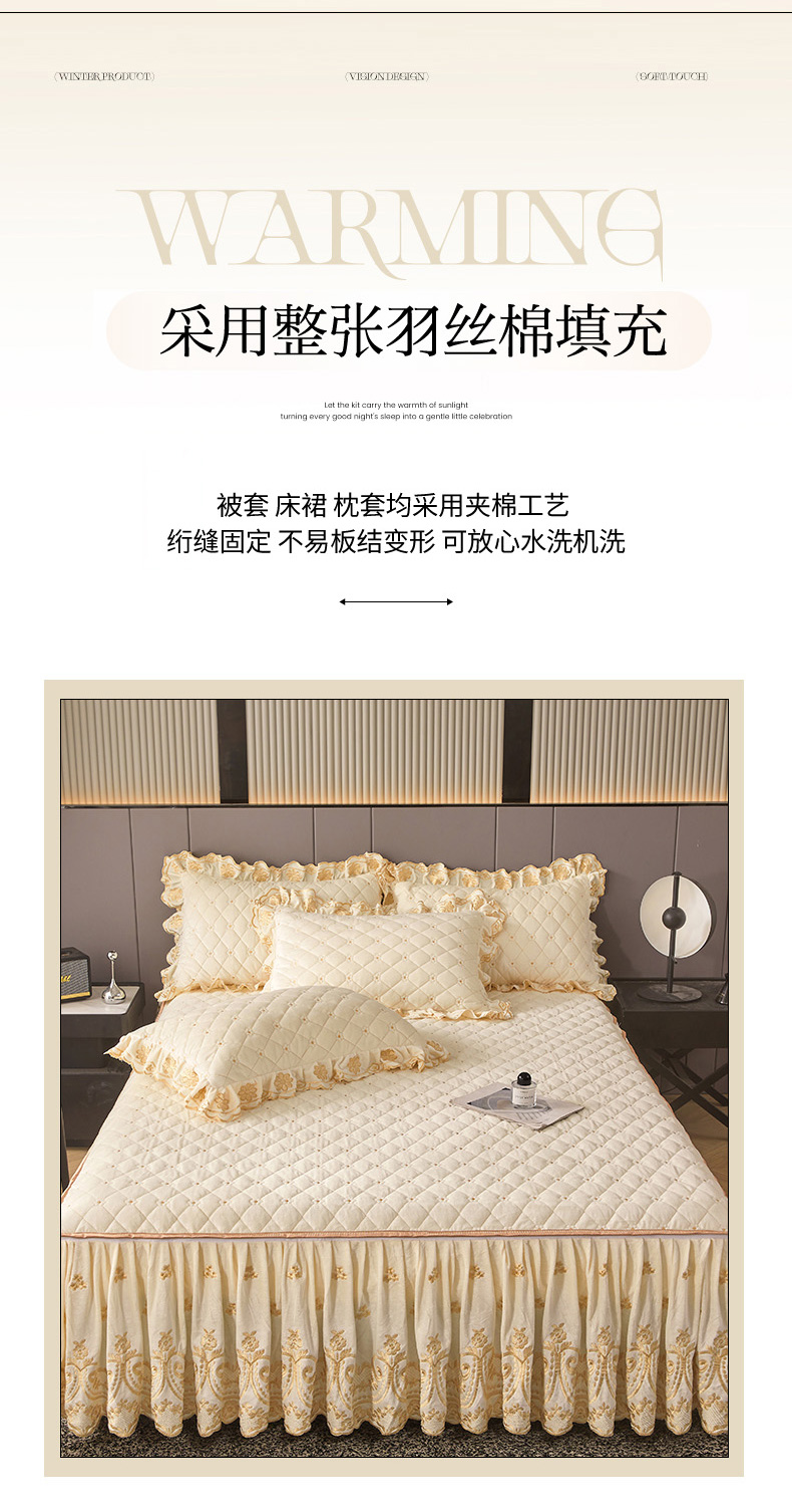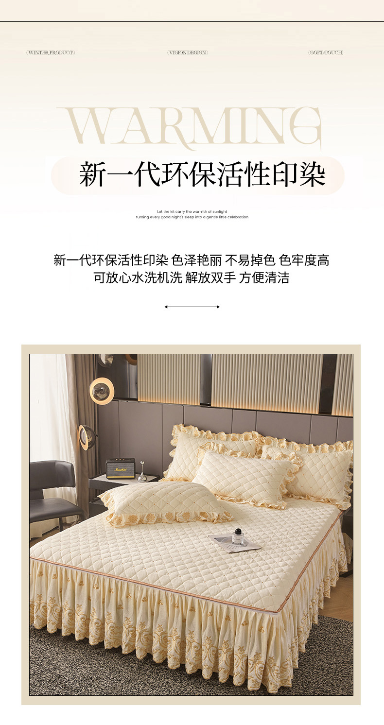 当前位置: 91家纺网 > 商品网购 > 床品套件 > 四件套 > 其它四件套 > 罗艺轩 2025新款婴儿绒加厚保暖床裙式四件套-心语 心语-奶昔
