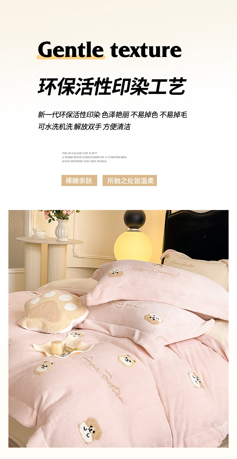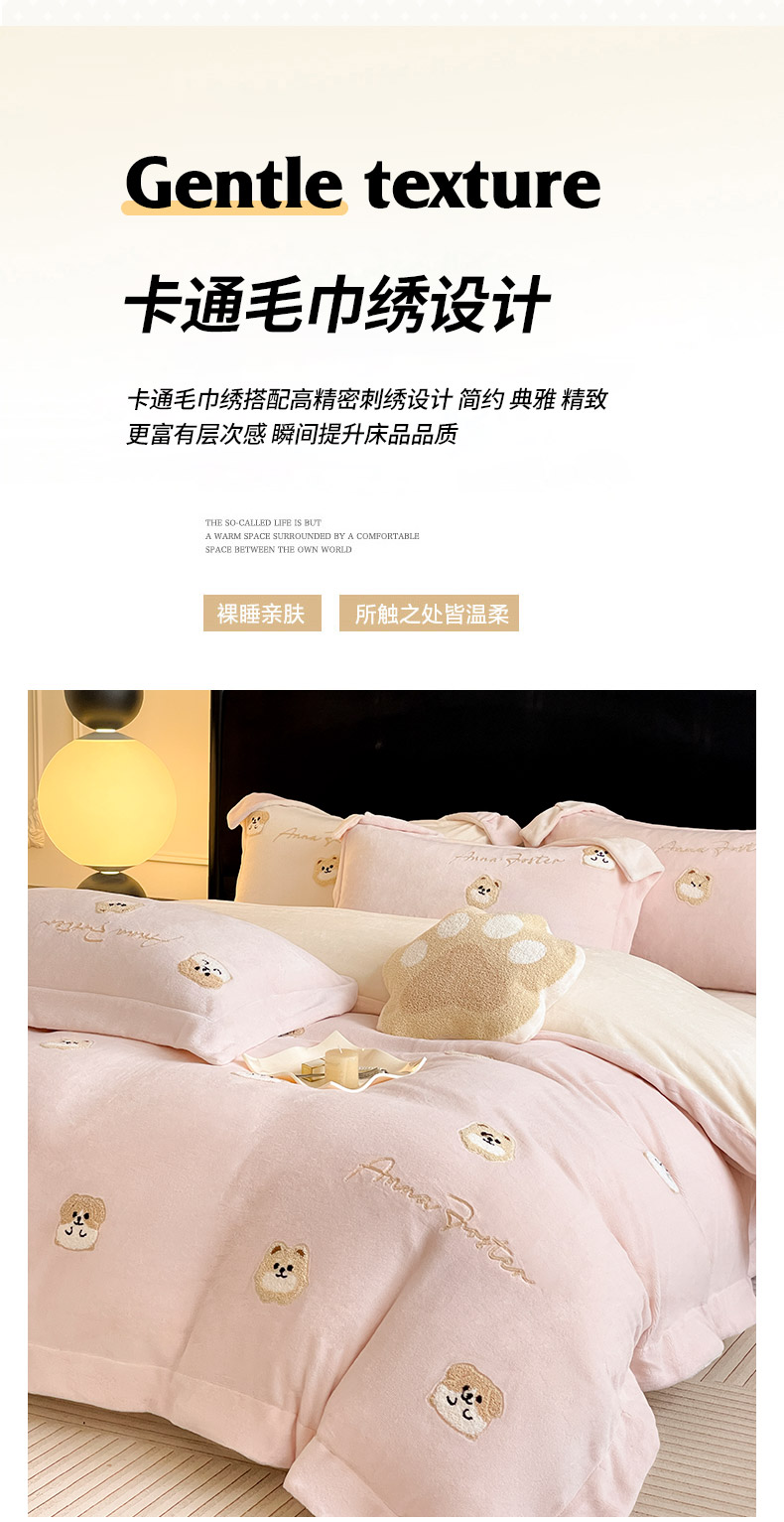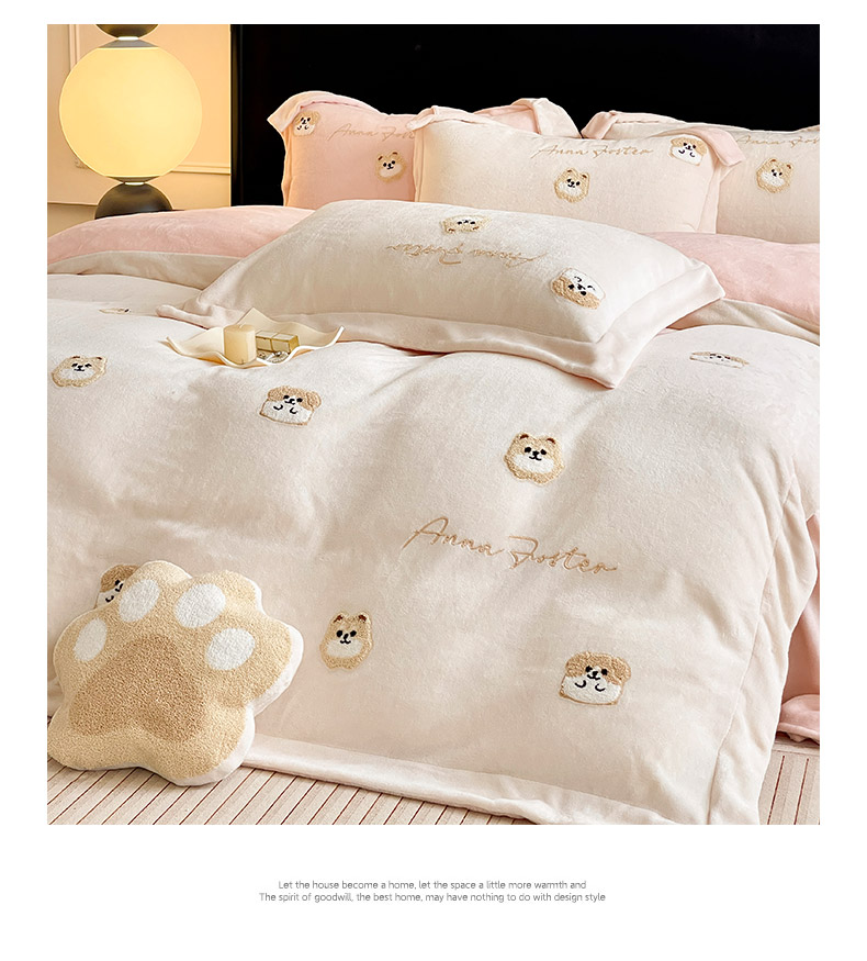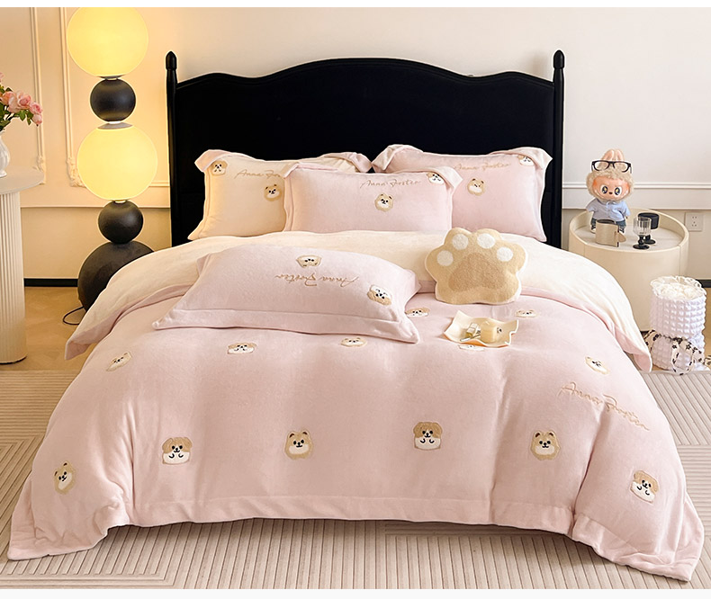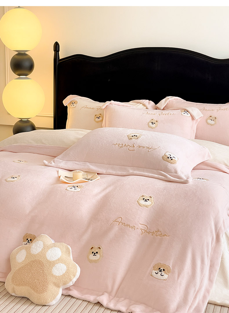 当前位置: 91家纺网 > 商品网购 > 床品套件 > 四件套 > 牛奶绒四件套 > 2025新款A类双面加厚保暖加绒宝宝绒刺绣被套床单卡通可爱床上用品牛奶绒四件套-元气萌宝 元气萌宝-粉米