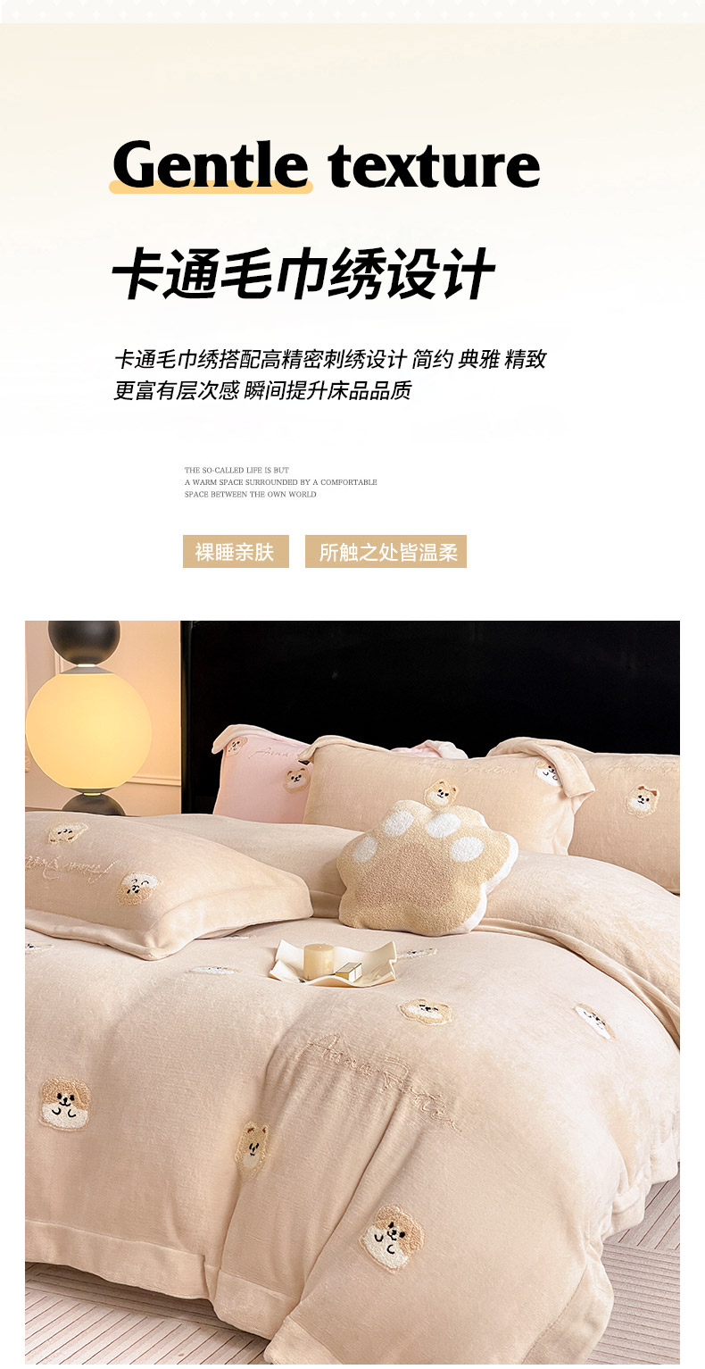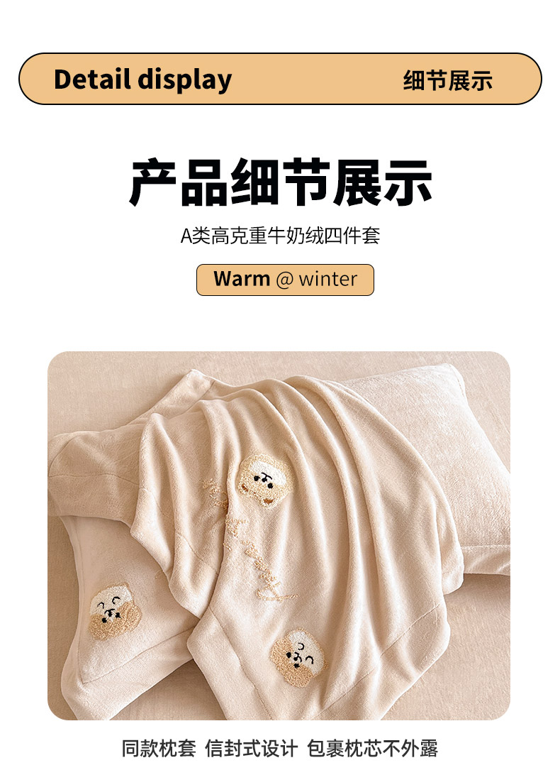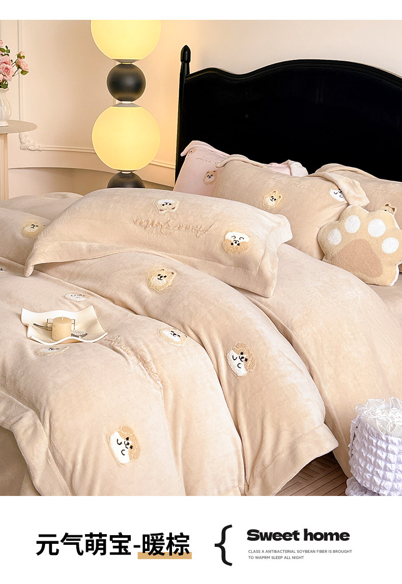 • 91家纺网 家纺一手货源 找家纺  2025新款A类双面加厚保暖加绒宝宝绒刺绣被套床单卡通可爱床上用品牛奶绒四件套-元气萌宝 元气萌宝-暖棕