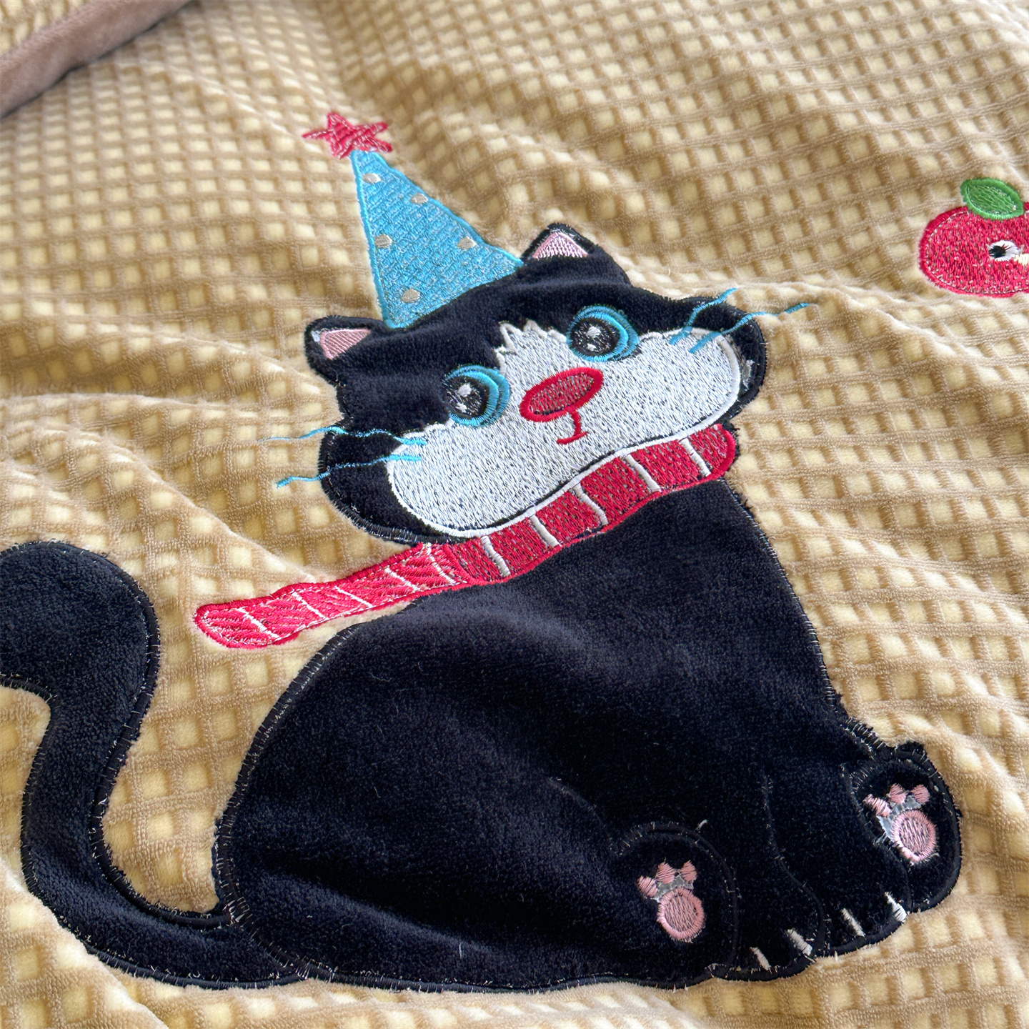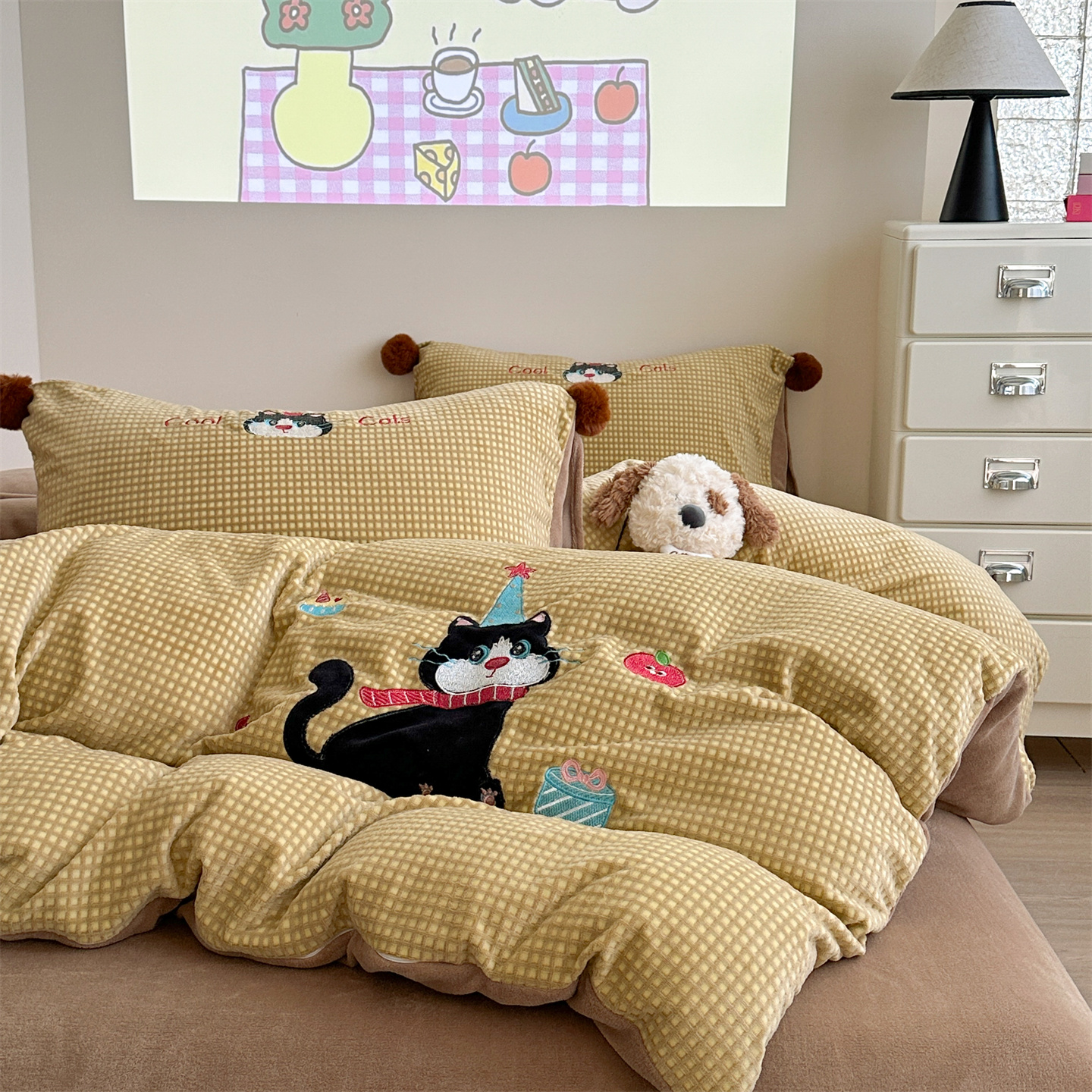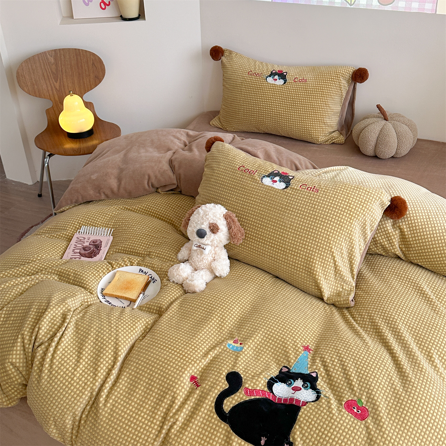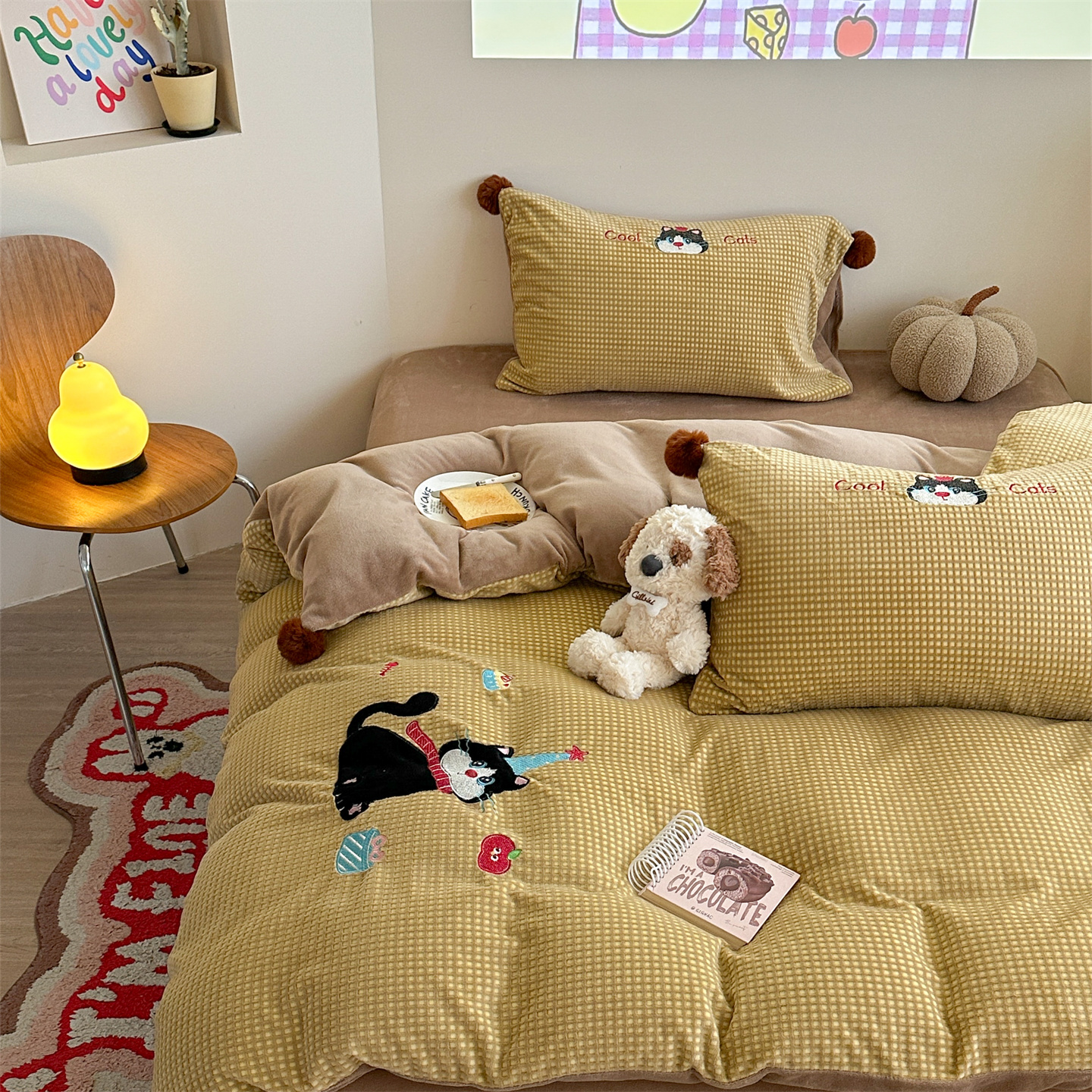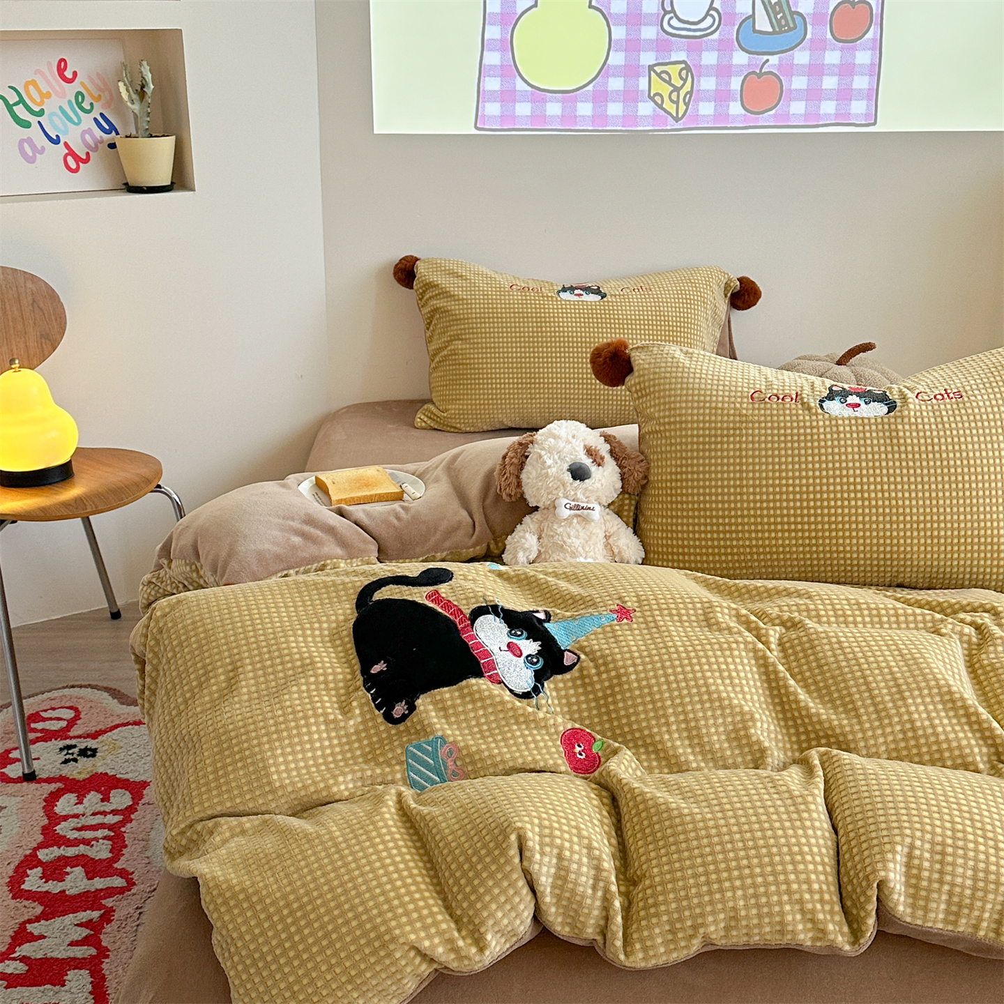柚子YOUTH 2025新款华夫格提花绒刺绣四件套 黑猫的礼物