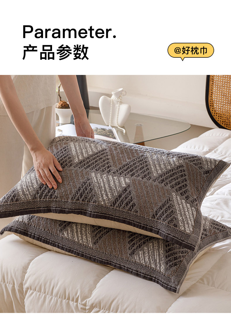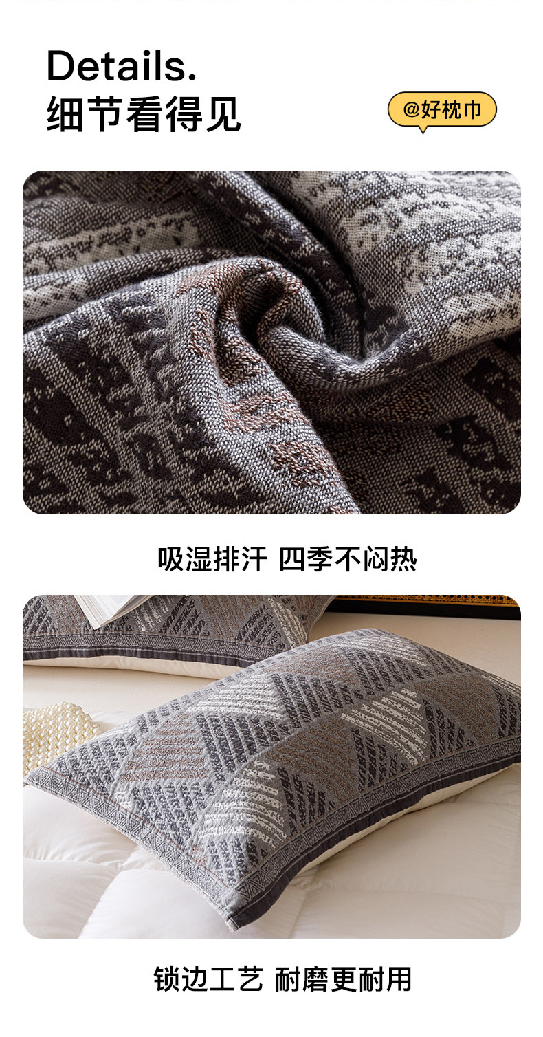 商品名称:爱港家纺 2025新款全棉巴恩风纱布枕巾 隔热 耐脏,防滑 凉山