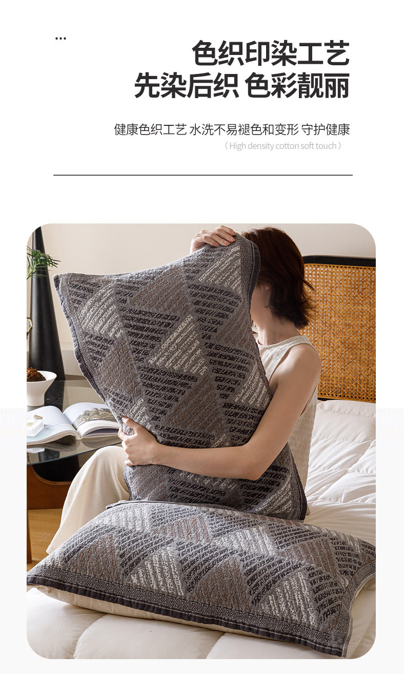 爱港家纺 2025新款全棉巴恩风纱布枕巾 隔热 耐脏,防滑 凉山