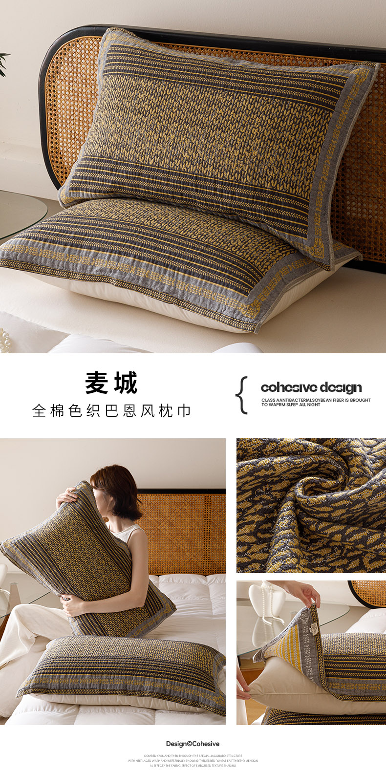 (总)爱港家纺 2025新款全棉巴恩风纱布枕巾 隔热 耐脏,防滑,朝歌,卷轴,喀什,凉山,楼兰,麦城,牧野,那曲,组合
