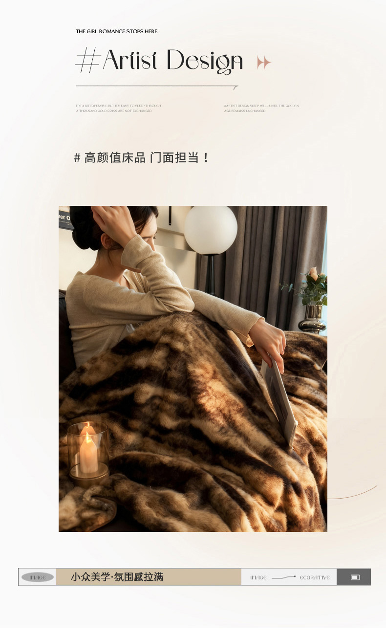 商品名称:九花鹿 2025新款丹麦皮草绒水貂绒盖毯毛毯毯子 艾莉