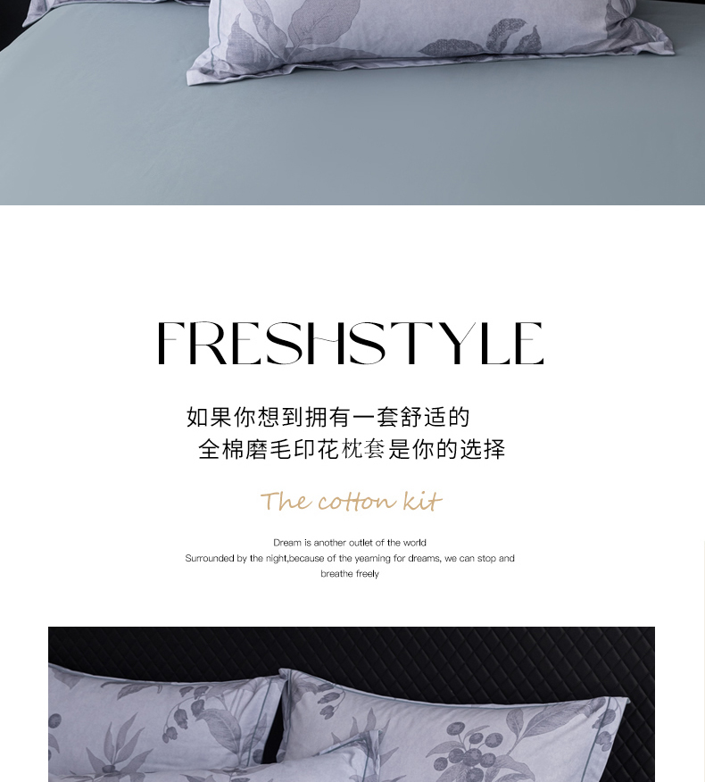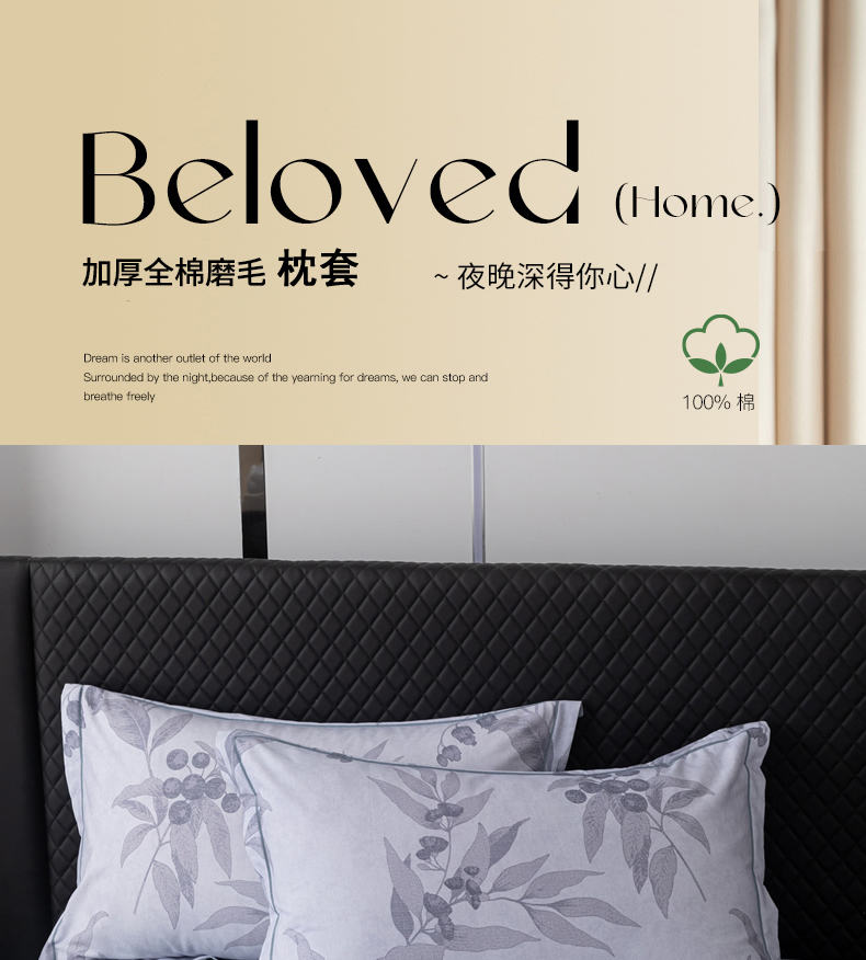 商品名称:贝兰仙奴 2025新款全棉磨毛多规格系列单枕套 安梦灰