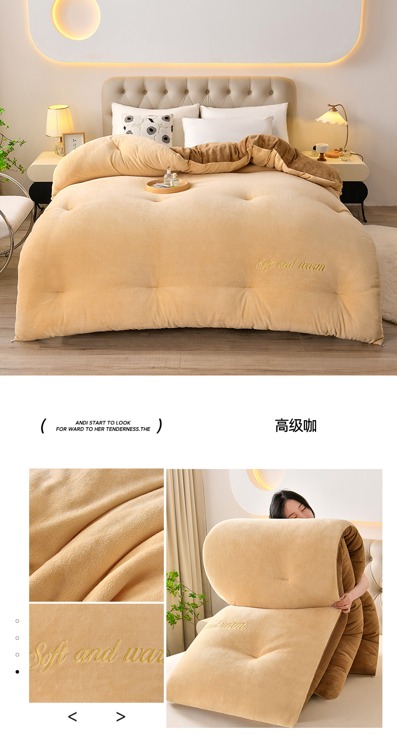 商品名称:春雨家居 2025新款双面牛奶绒刺绣冬被被子被芯 高级咖