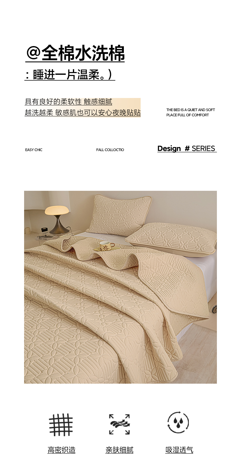 芬晴家纺 2025新款A类全棉水洗棉床盖-心欢系列-遇见系列 依恋-浅卡