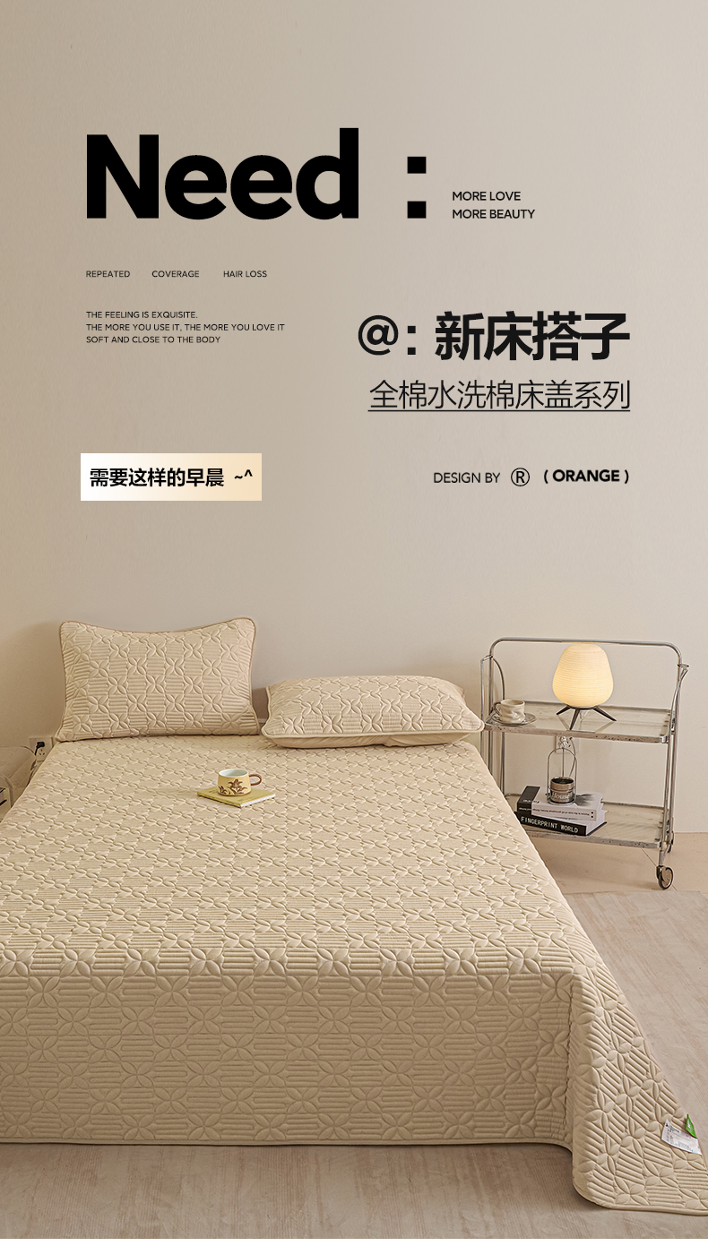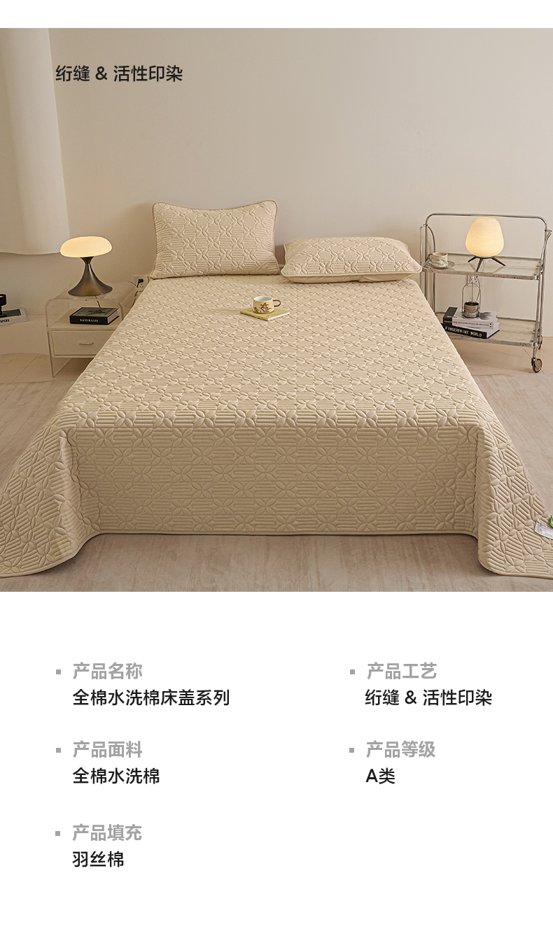 • 91家纺网 家纺一手货源 找家纺 芬晴家纺 2025新款A类全棉水洗棉床盖-心欢系列-遇见系列 依恋-浅卡