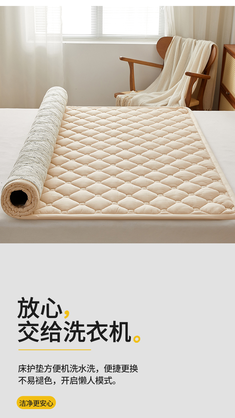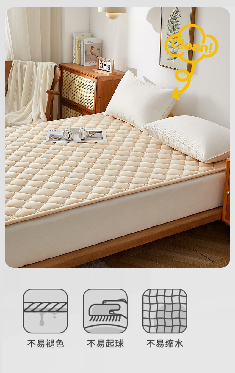 (总)卓越家纺 2025新款A类全棉夹棉床护垫,组合,水绿,浅灰,深灰,驼色,豆沙,奶白