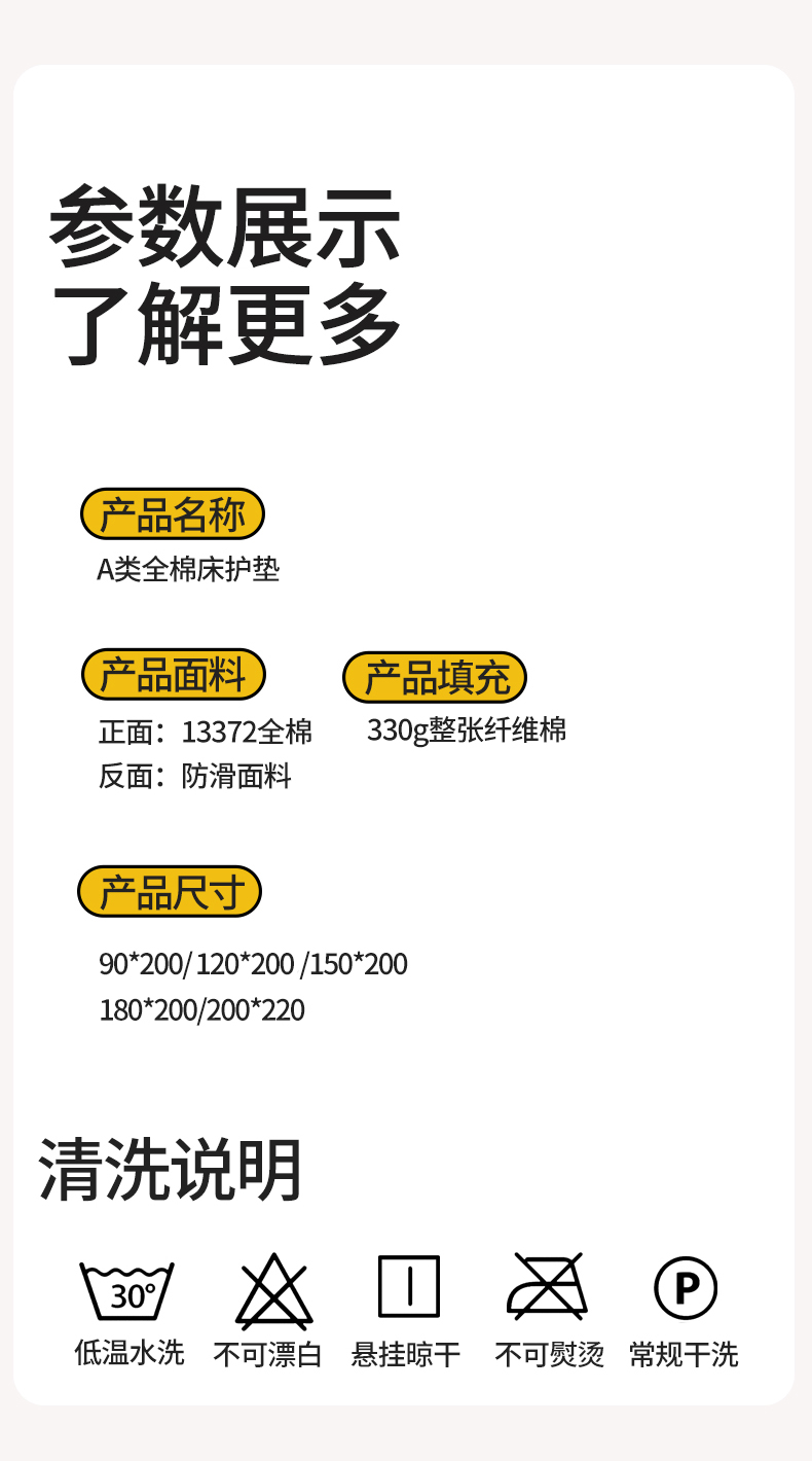 商品名称:卓越家纺 2025新款A类全棉夹棉床护垫 驼色