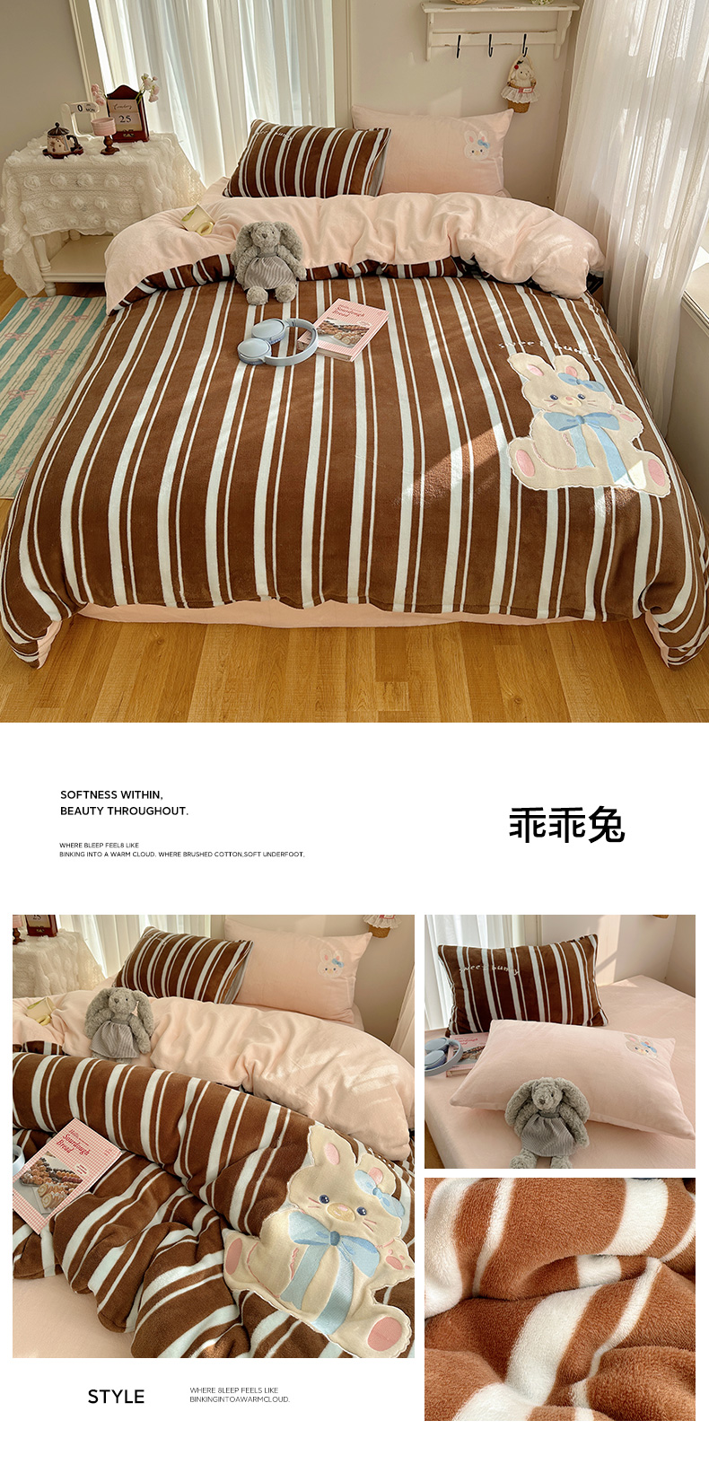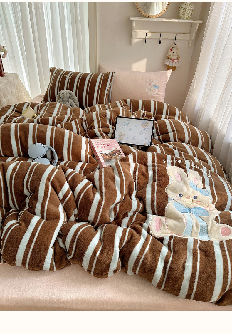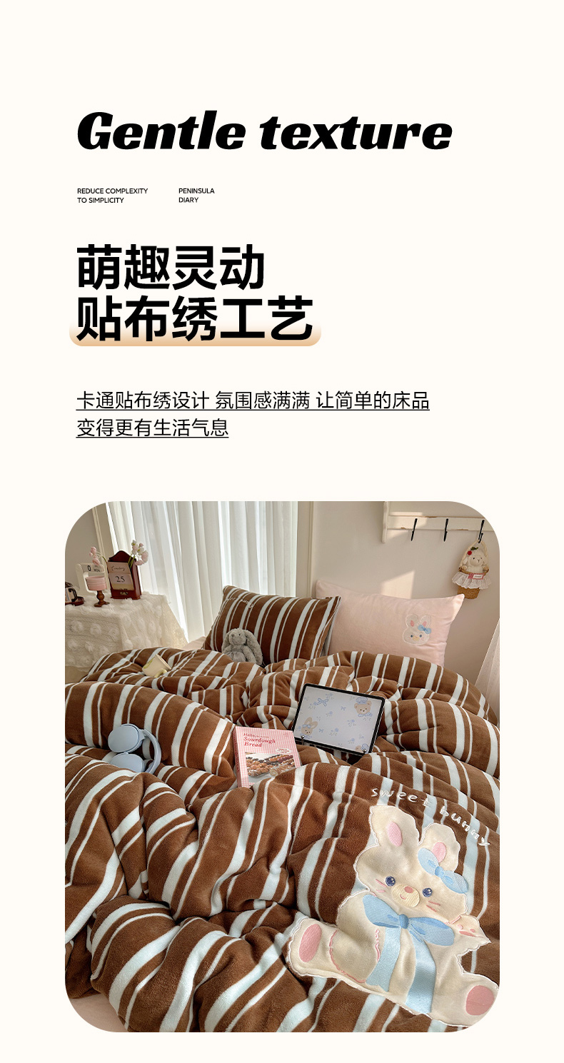 (总)韩都家居 2025新款卡通贴布绣系列加厚牛奶绒四件套