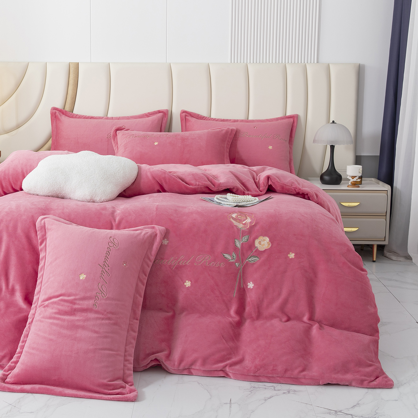 贝尔 2025新款纯色高克重牛奶绒刺绣四件套-羽魅 羽魅-豆沙,羽魅-豆沙