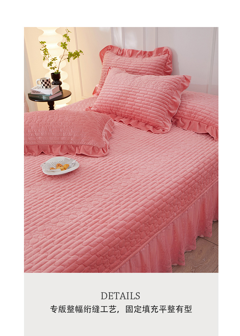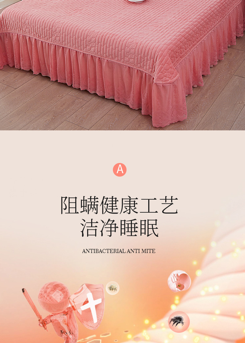 (总)程百万家纺 2025新款A类婴儿绒夹棉加厚床裙床盖,桃粉,宝蓝,大红,豆沙,橘黄,浅灰,紫色