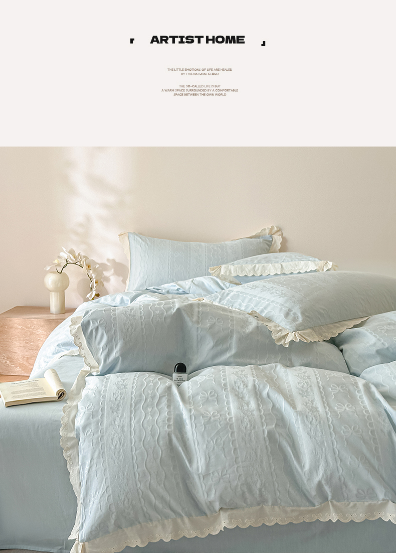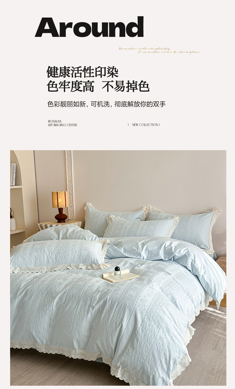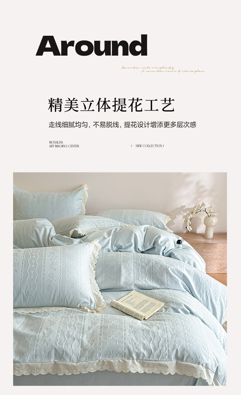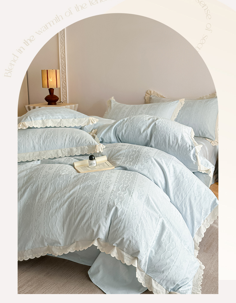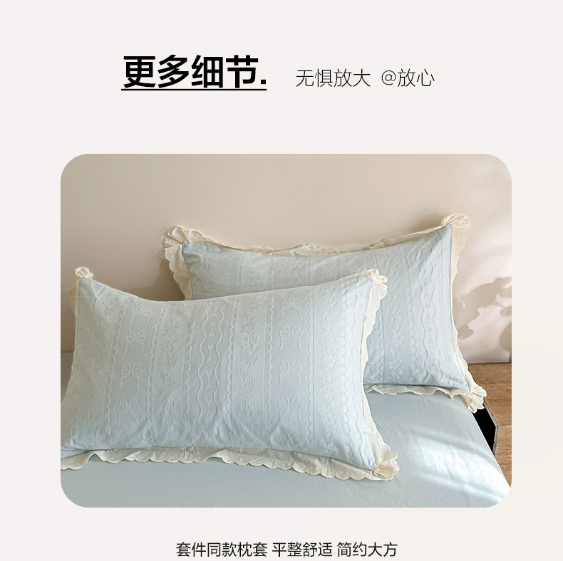 当前位置: 91家纺网 > 商品网购 > 床品套件 > 四件套 > 长绒棉四件套 > 禾时 2026新款长绒棉立体提花花边款四件套-星糖物语 星糖物语-淡蓝