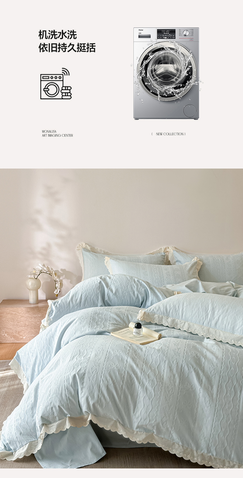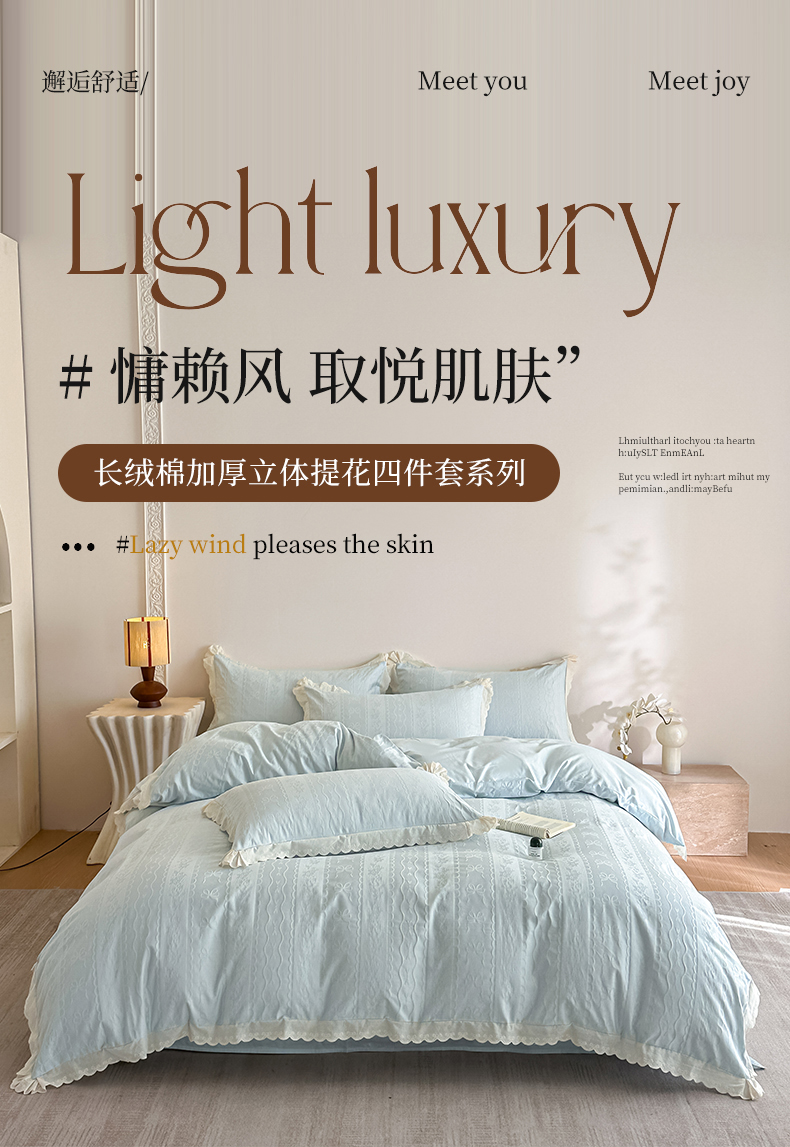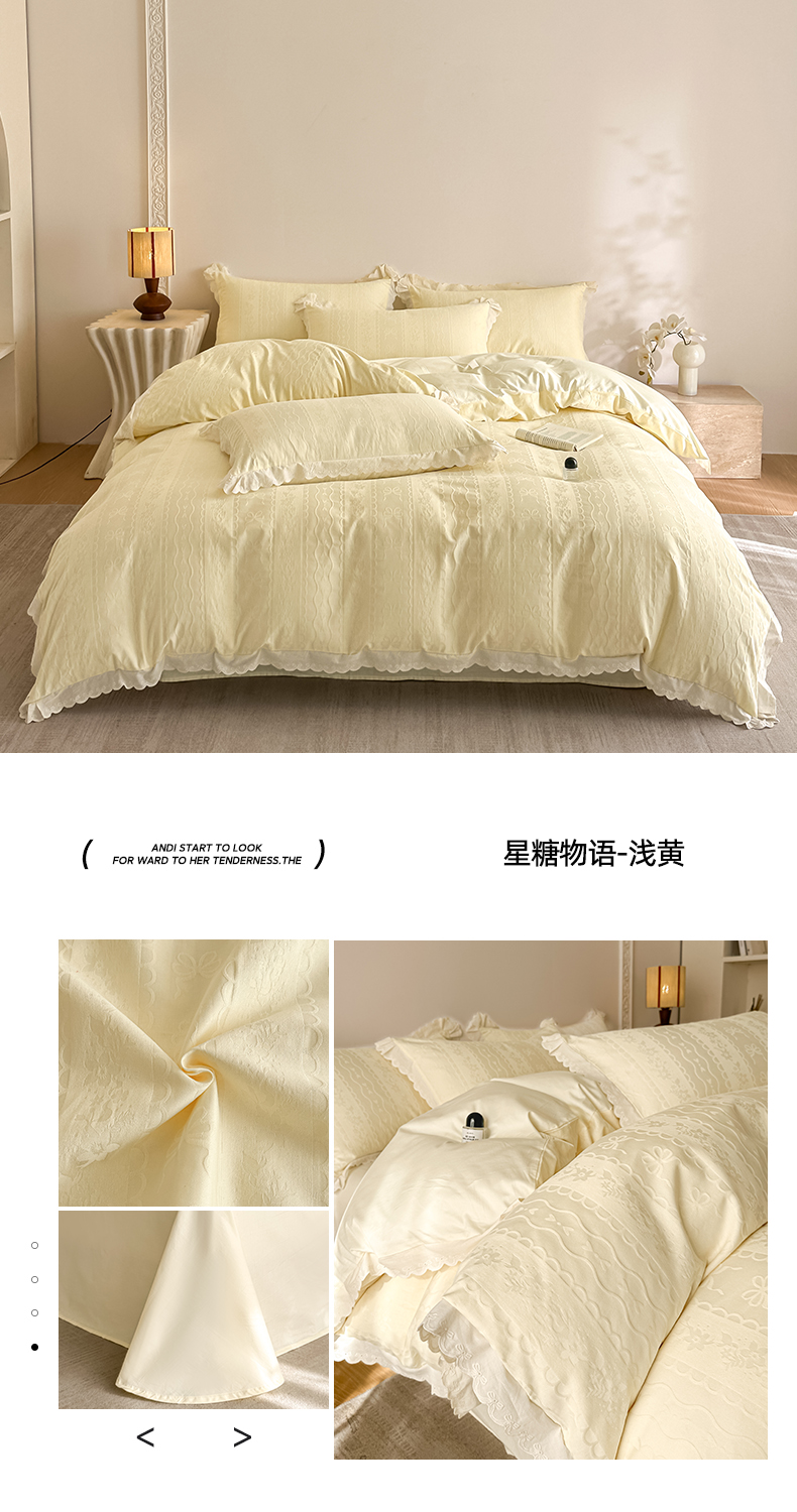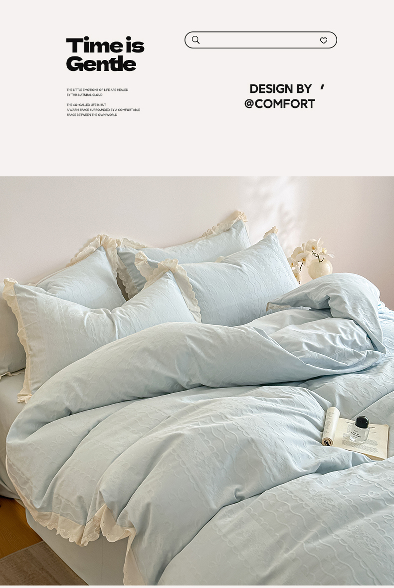 当前位置: 91家纺网 > 商品网购 > 床品套件 > 四件套 > 长绒棉四件套 > 禾时 2026新款长绒棉立体提花花边款四件套-星糖物语 星糖物语-淡蓝