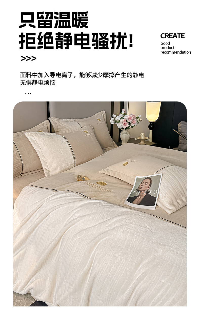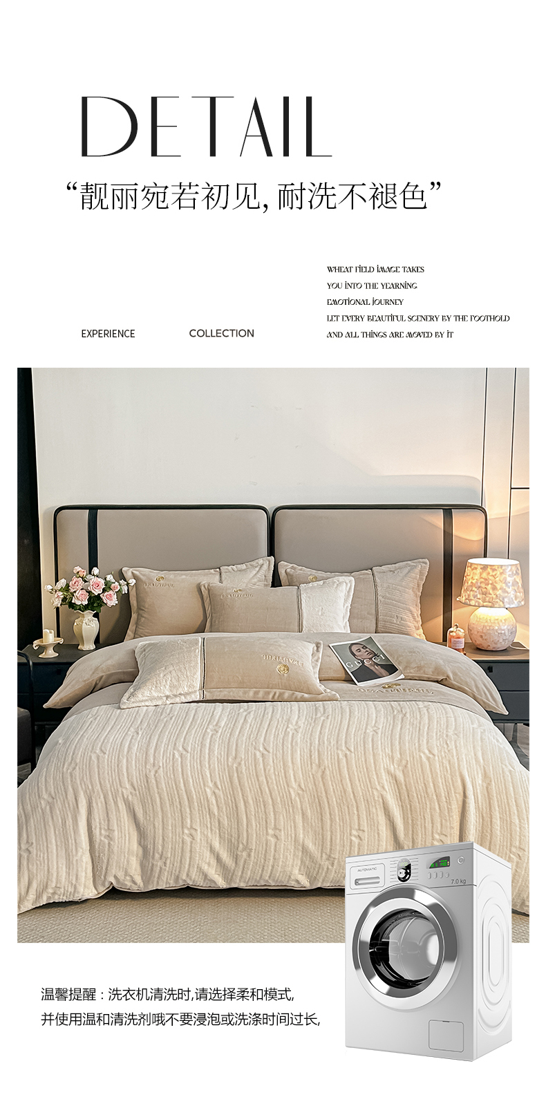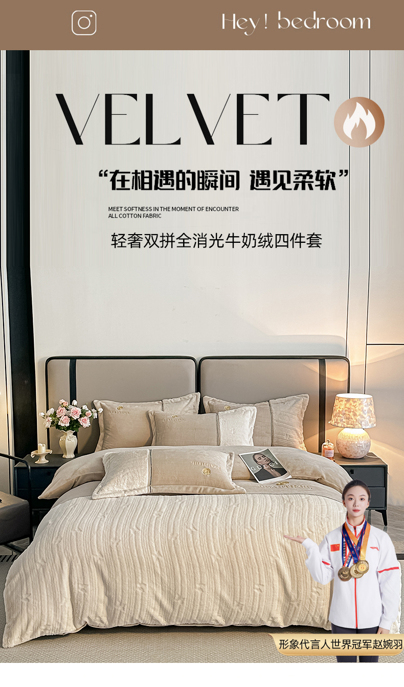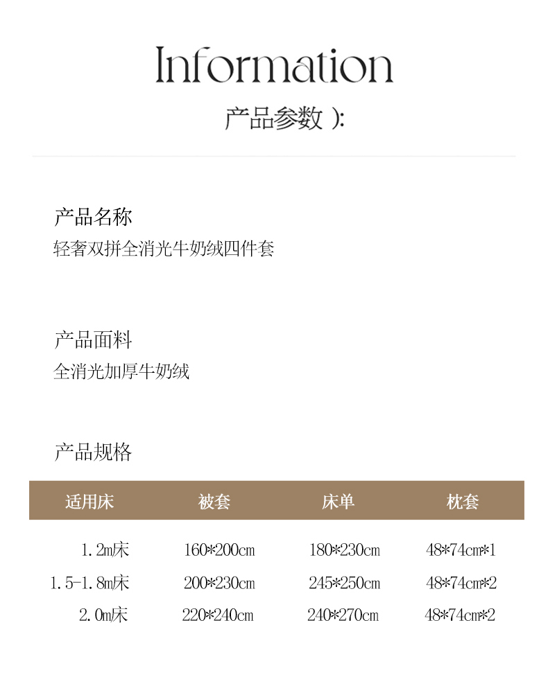 商品名称:金窝窝家纺 2025新款轻奢双拼全消光牛奶绒四件套-安娜 安娜-奶油咖