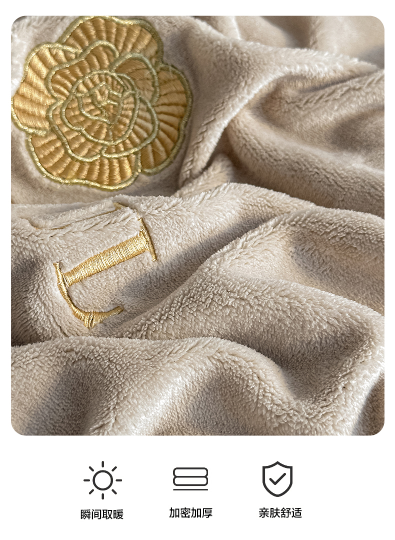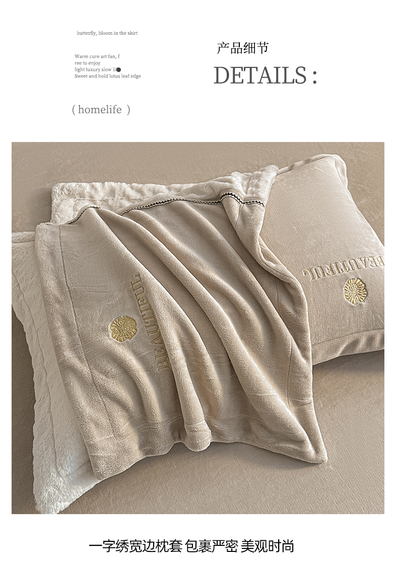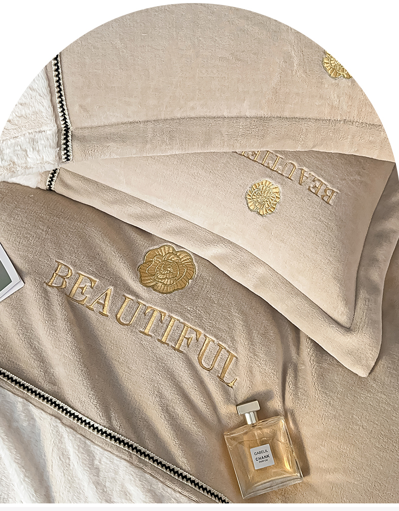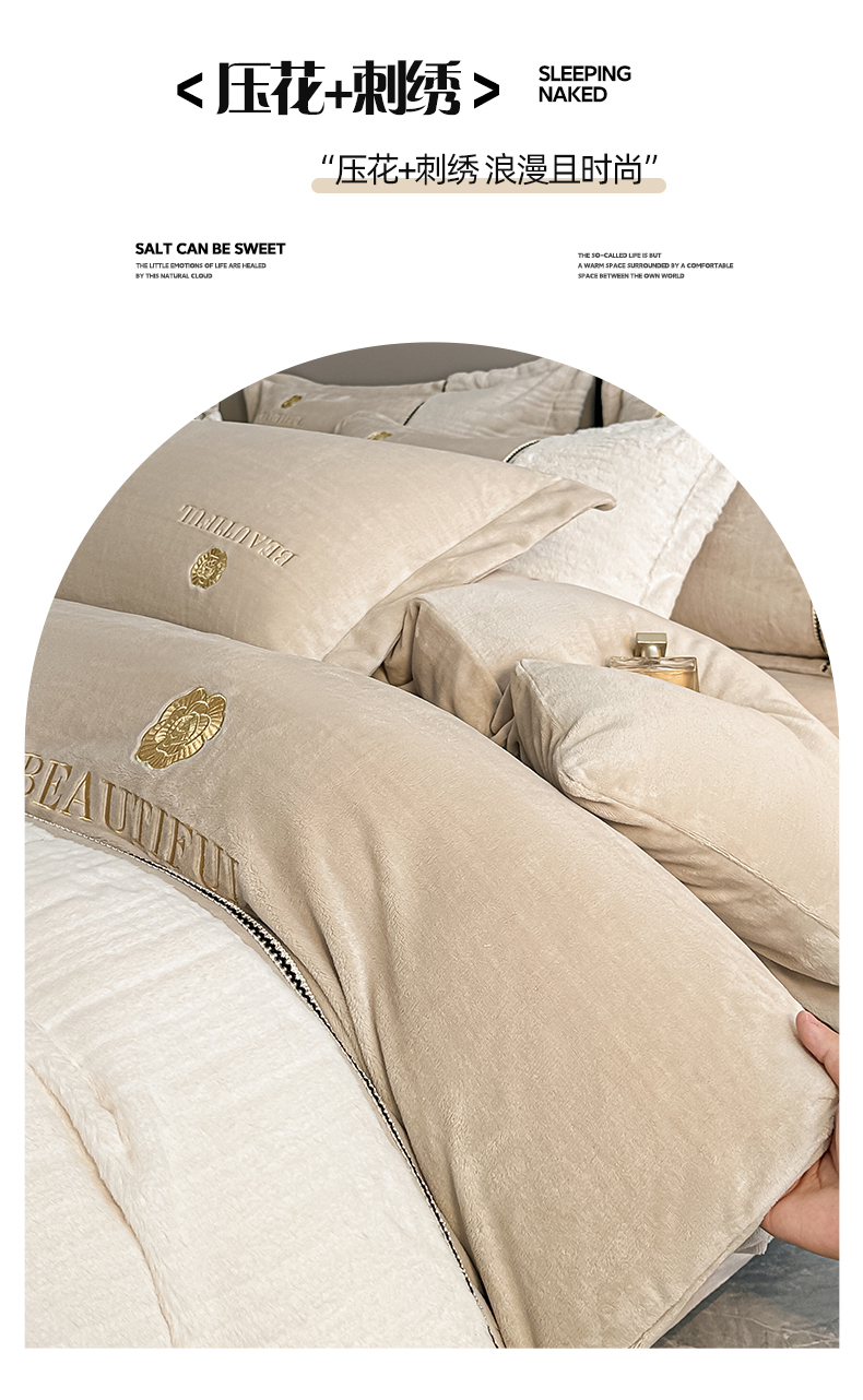 总金窝窝家纺2024重工刺绣280克A类婴儿牛奶绒刺绣四件套系列-美好生活,美好生活—粉