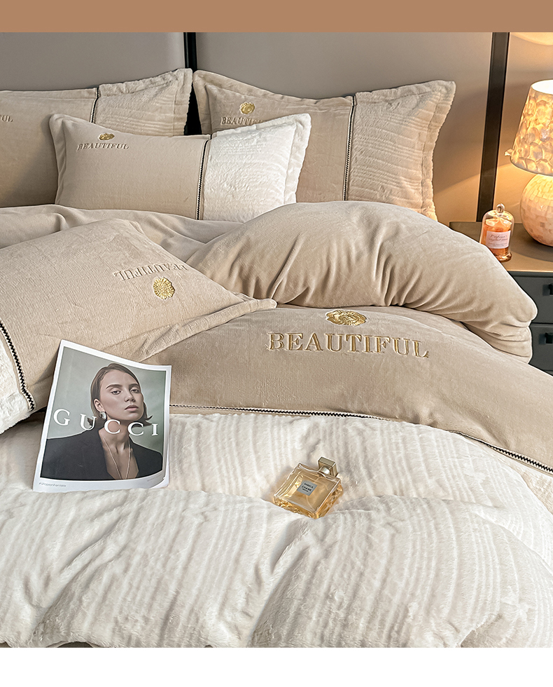 金窝窝家纺 2025新款轻奢双拼全消光牛奶绒四件套-安娜 安娜-奶油咖