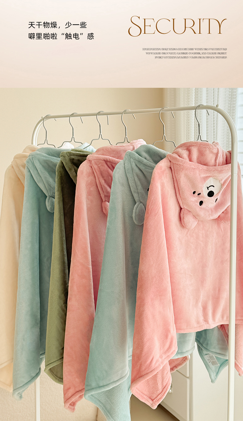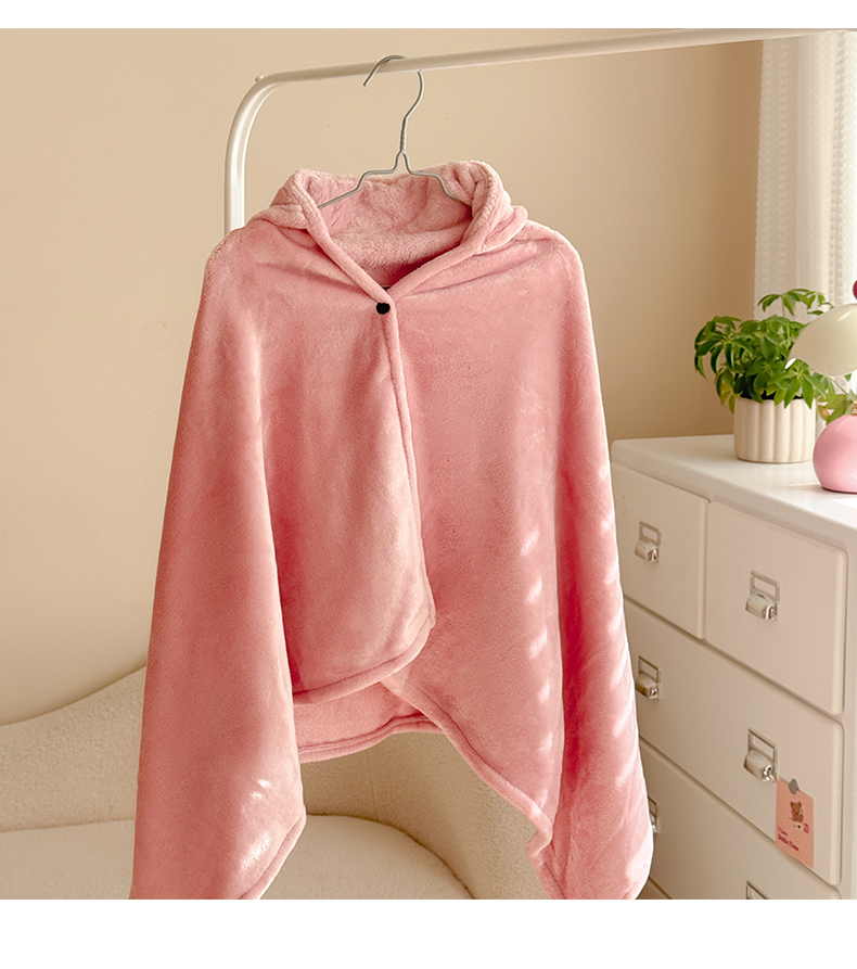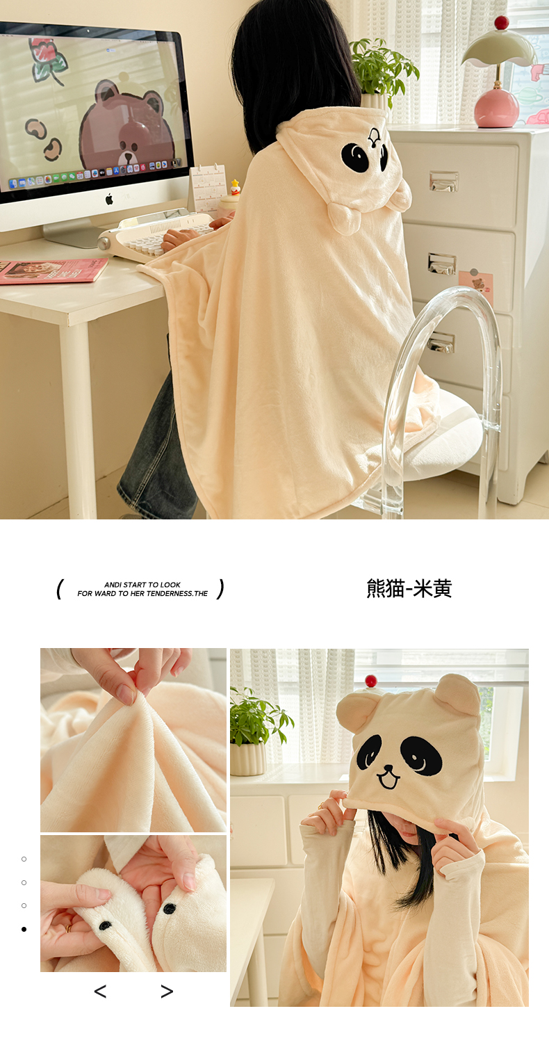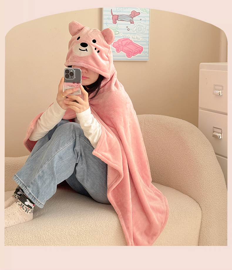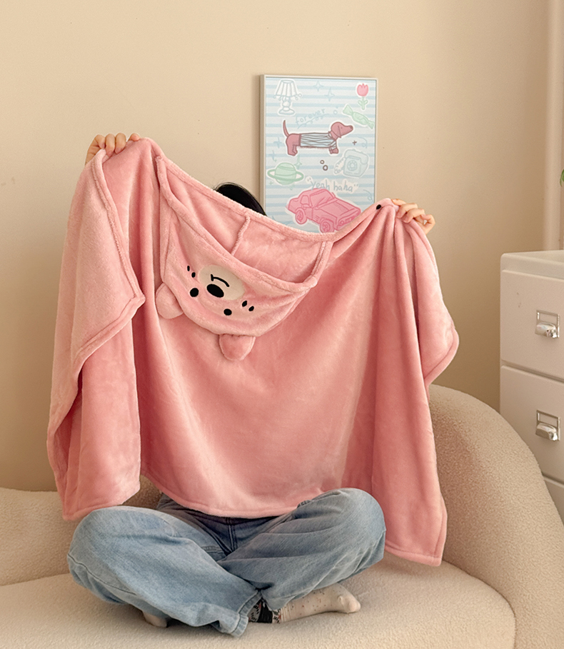 简宜家居(朝初家纺) 2025新款带帽披肩毯子熊猫和熊午休毯带帽毯 可爱熊-粉