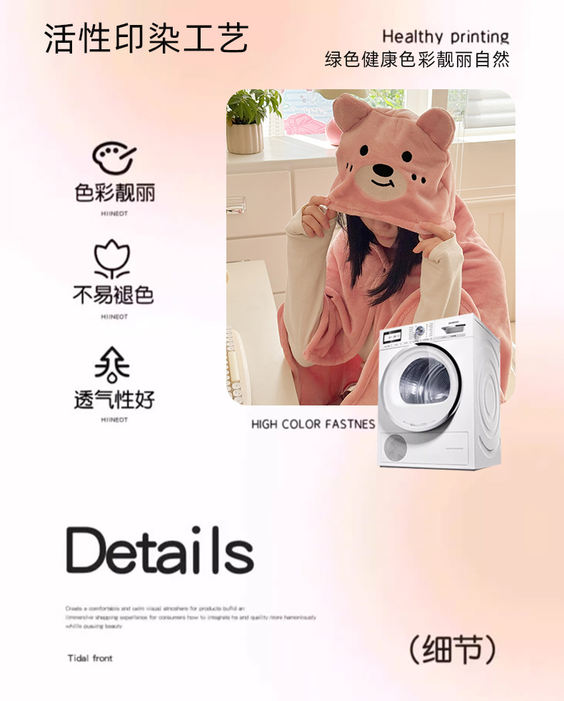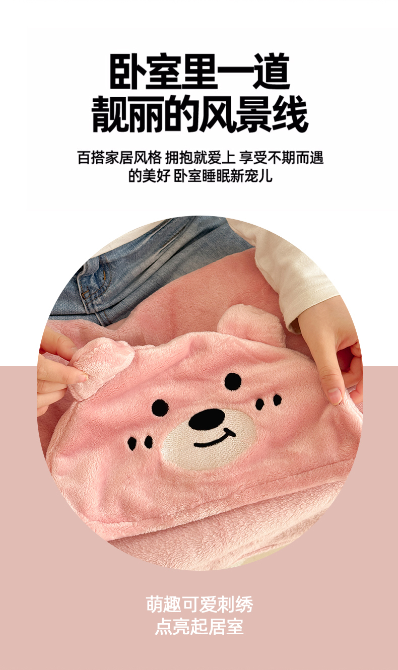 商品名称:简宜家居(朝初家纺) 2025新款带帽披肩毯子熊猫和熊午休毯带帽毯 可爱熊-粉