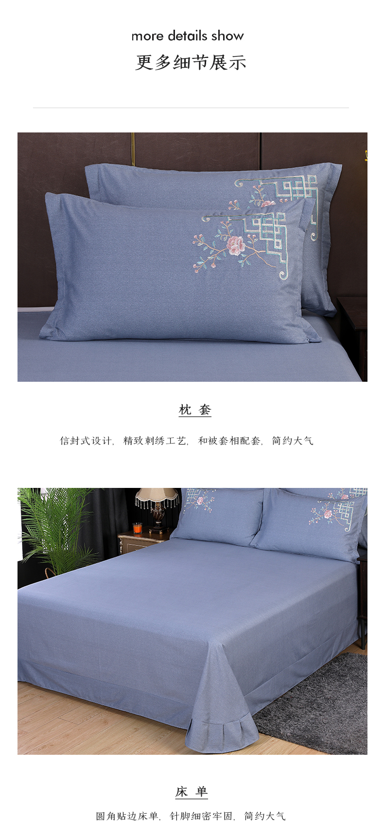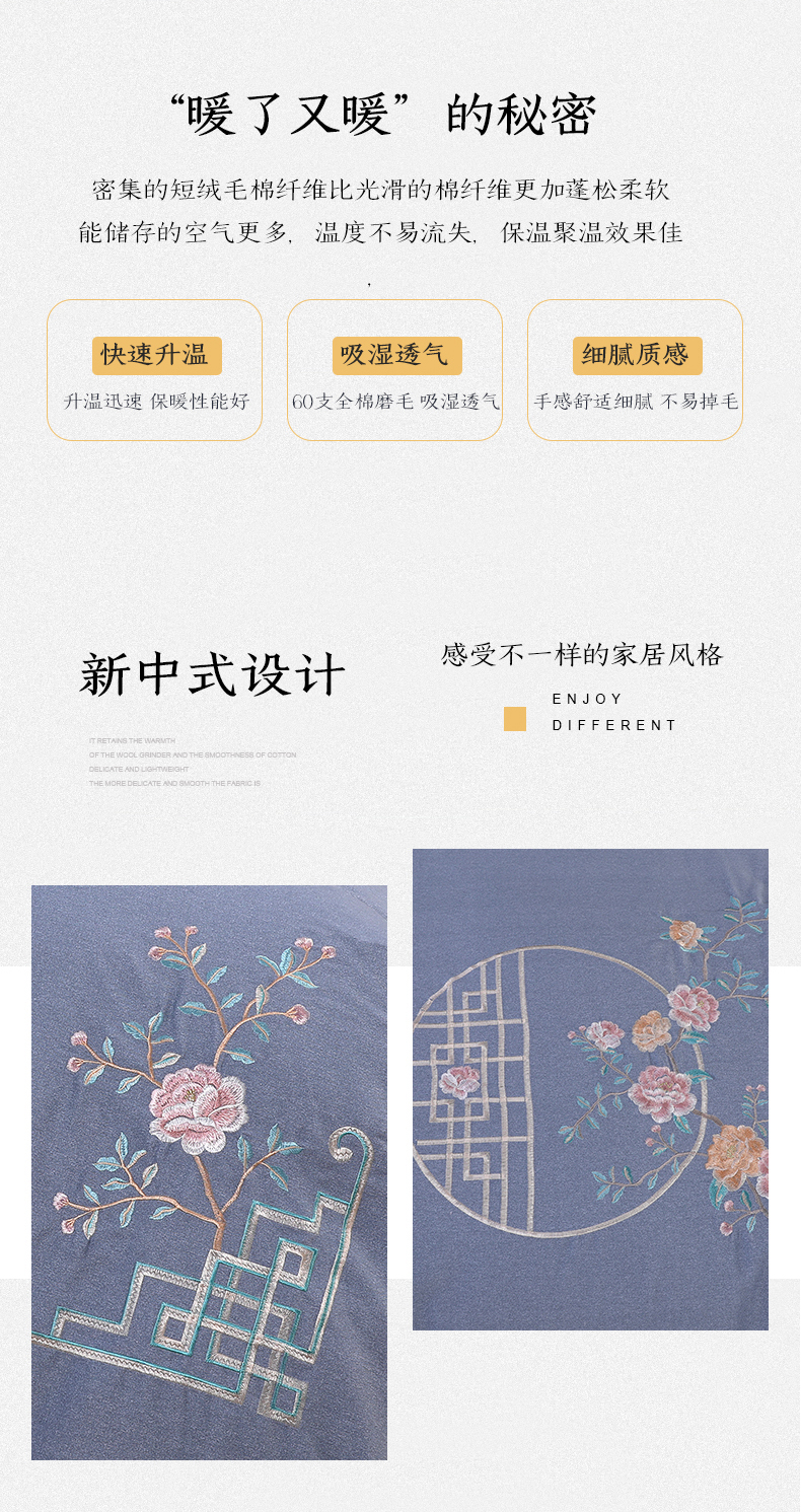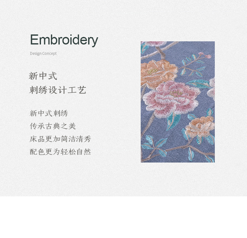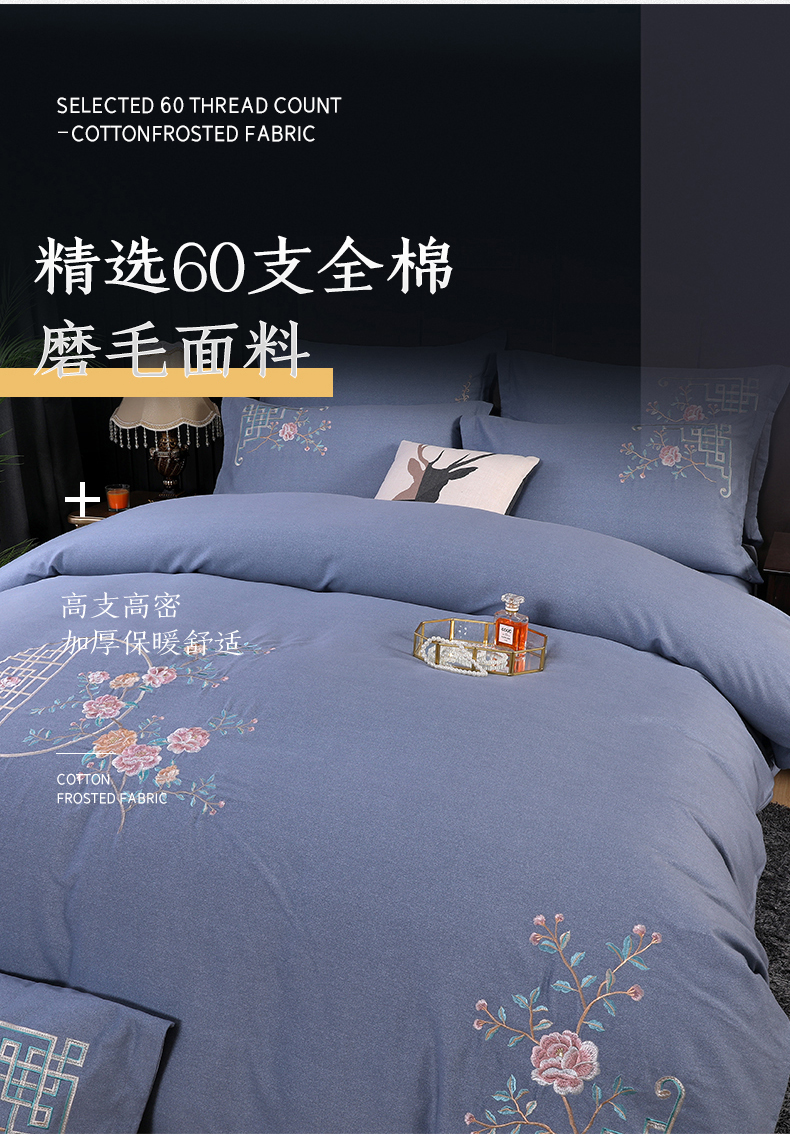 商品名称:浩情国际婚庆供货中心 2026新款秋冬60S高端全棉刺绣磨毛系列 花开满庭-银灰