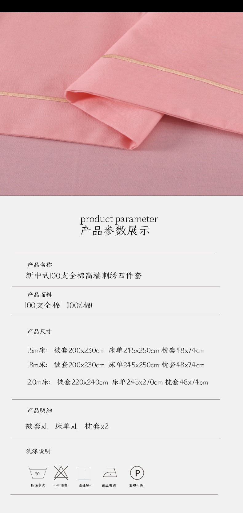 商品名称:浩情国际婚庆供货中心 2026新款新中式风100支全棉高端刺绣四件套 江南人家-粉玉