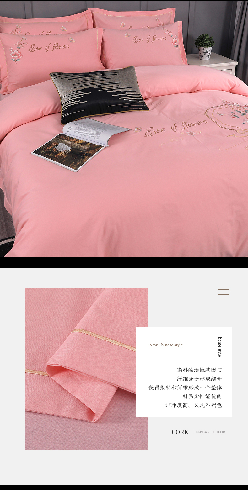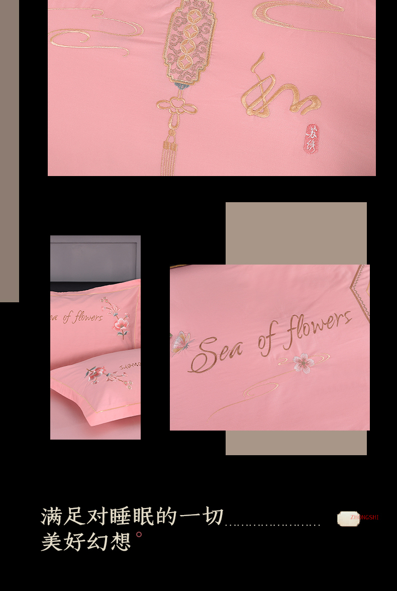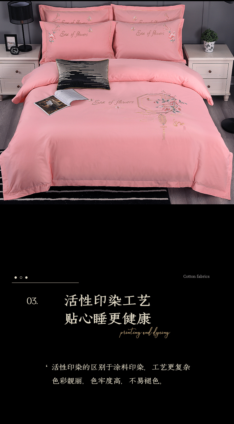 浩情国际婚庆供货中心 2026新款新中式风100支全棉高端刺绣四件套 江南人家-粉玉
