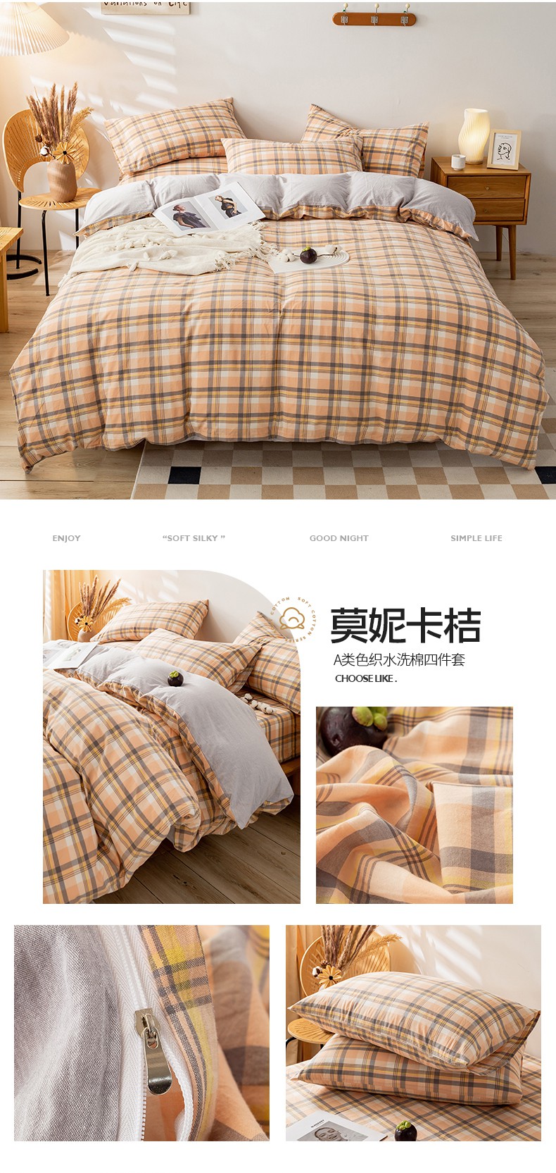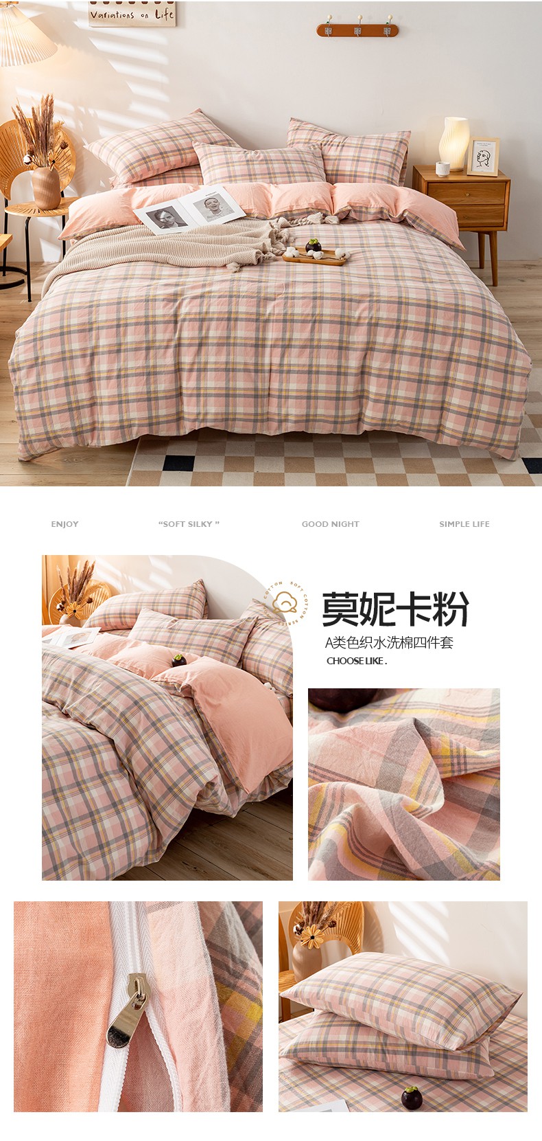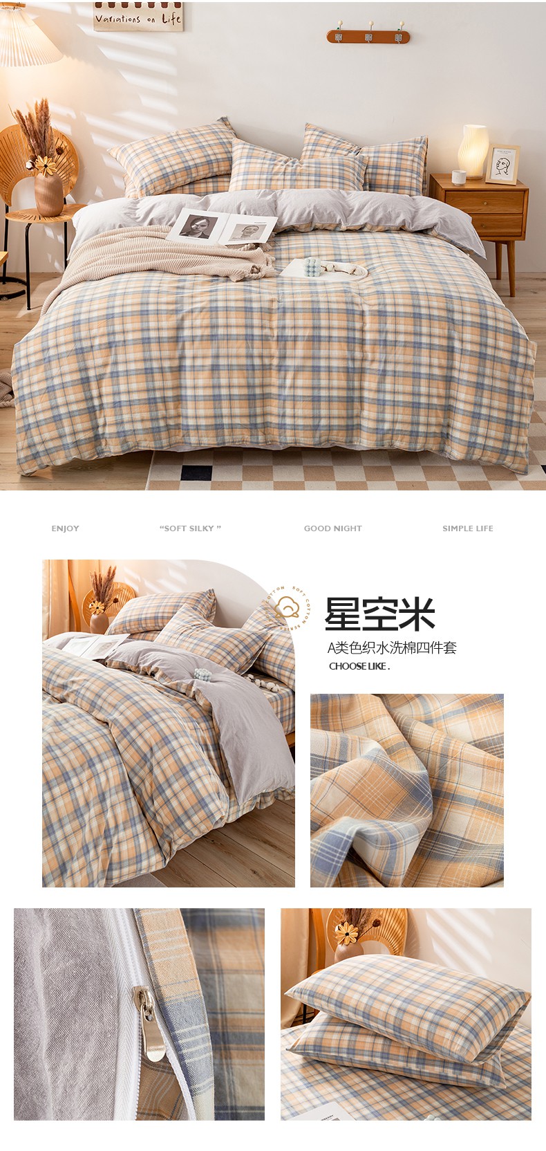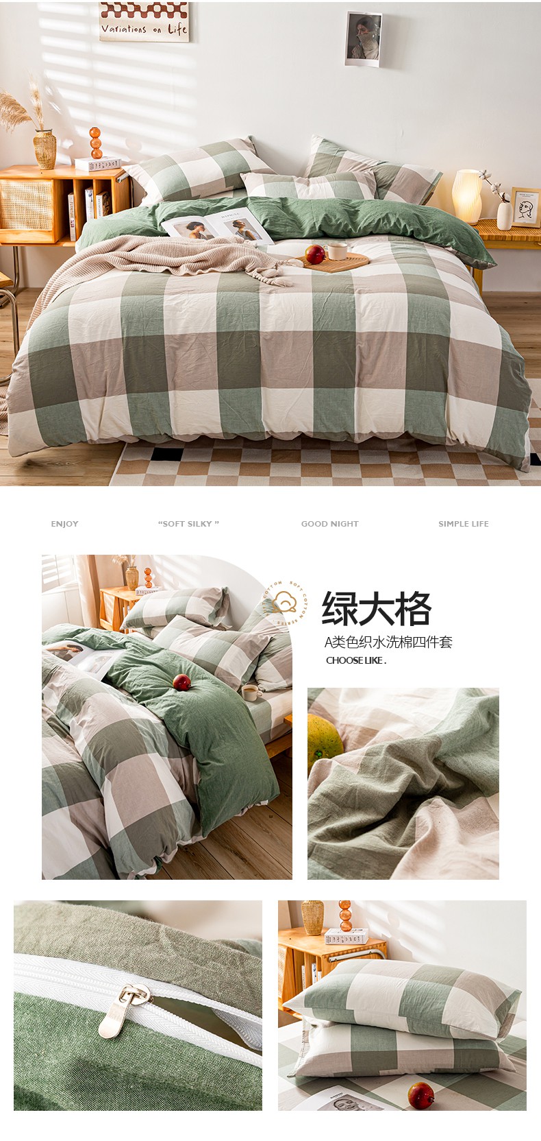 当前位置: 91家纺网 > 商品网购 > 床品套件 > 四件套 > 水洗棉四件套 > 咏绒家纺工厂店 2025新款A类色织水洗棉四件套 嫩绿卡其条