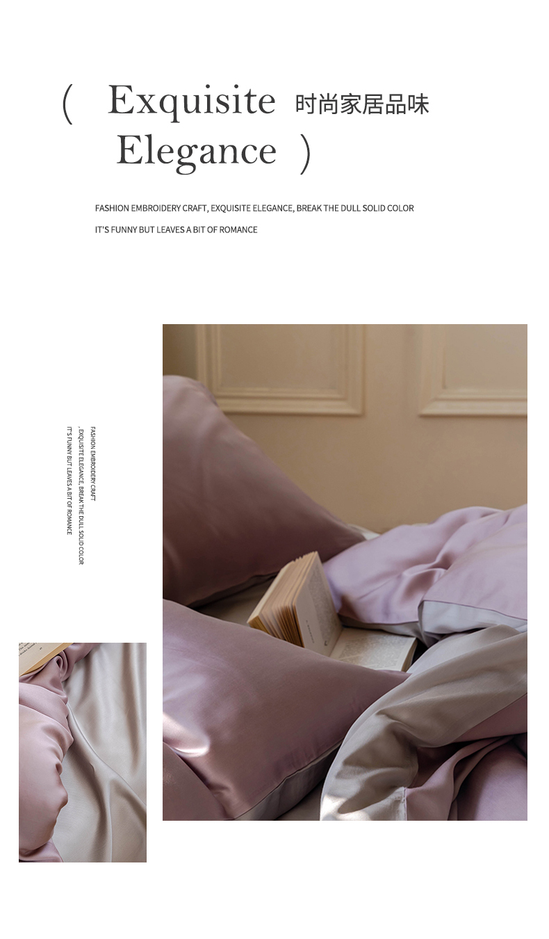 浩情国际婚庆供货中心 2026新款60支奥地利兰精天丝纯色双拼系列四件套 满天星紫-曙光银