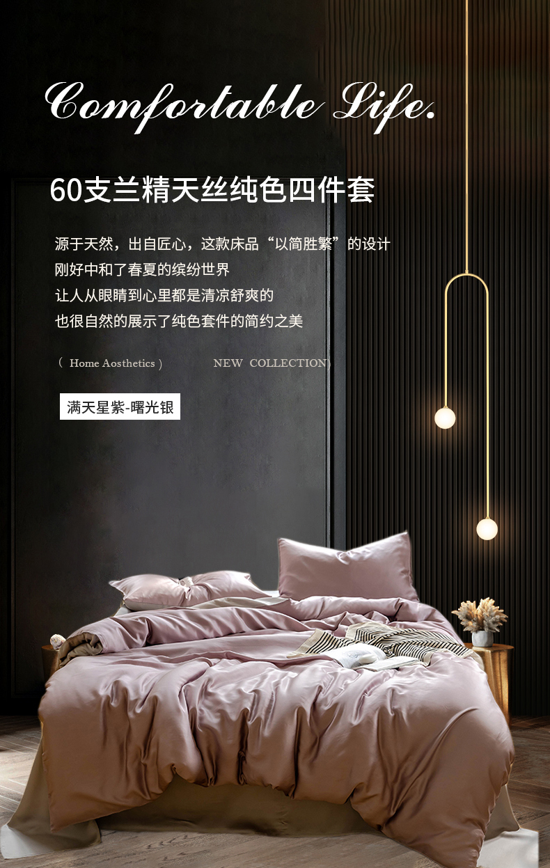 商品名称:浩情国际婚庆供货中心 2026新款60支奥地利兰精天丝纯色双拼系列四件套 满天星紫-曙光银