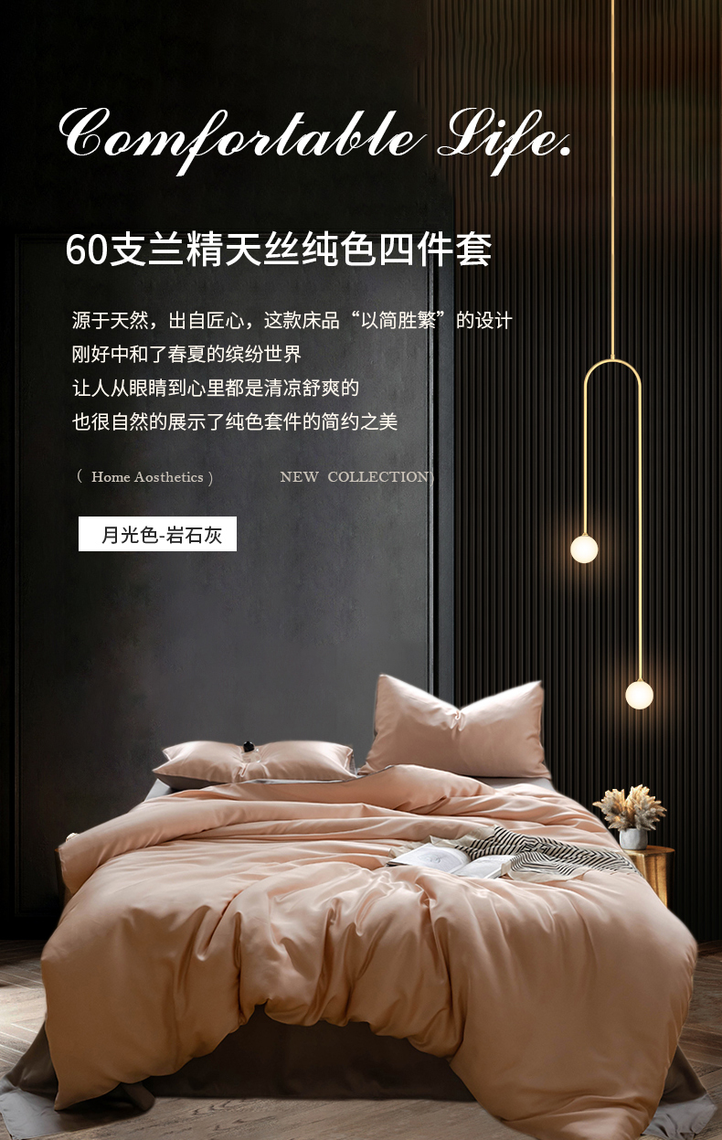 商品名称:浩情国际婚庆供货中心 2026新款60支奥地利兰精天丝纯色双拼系列四件套 月光色-岩石灰