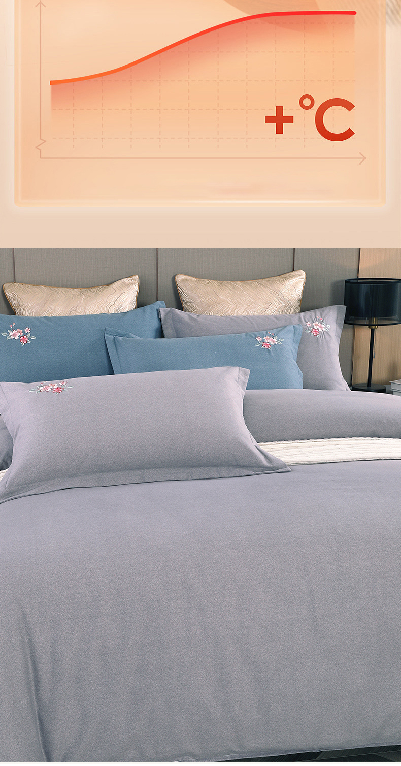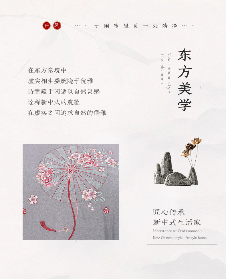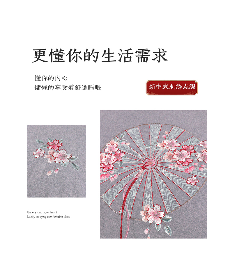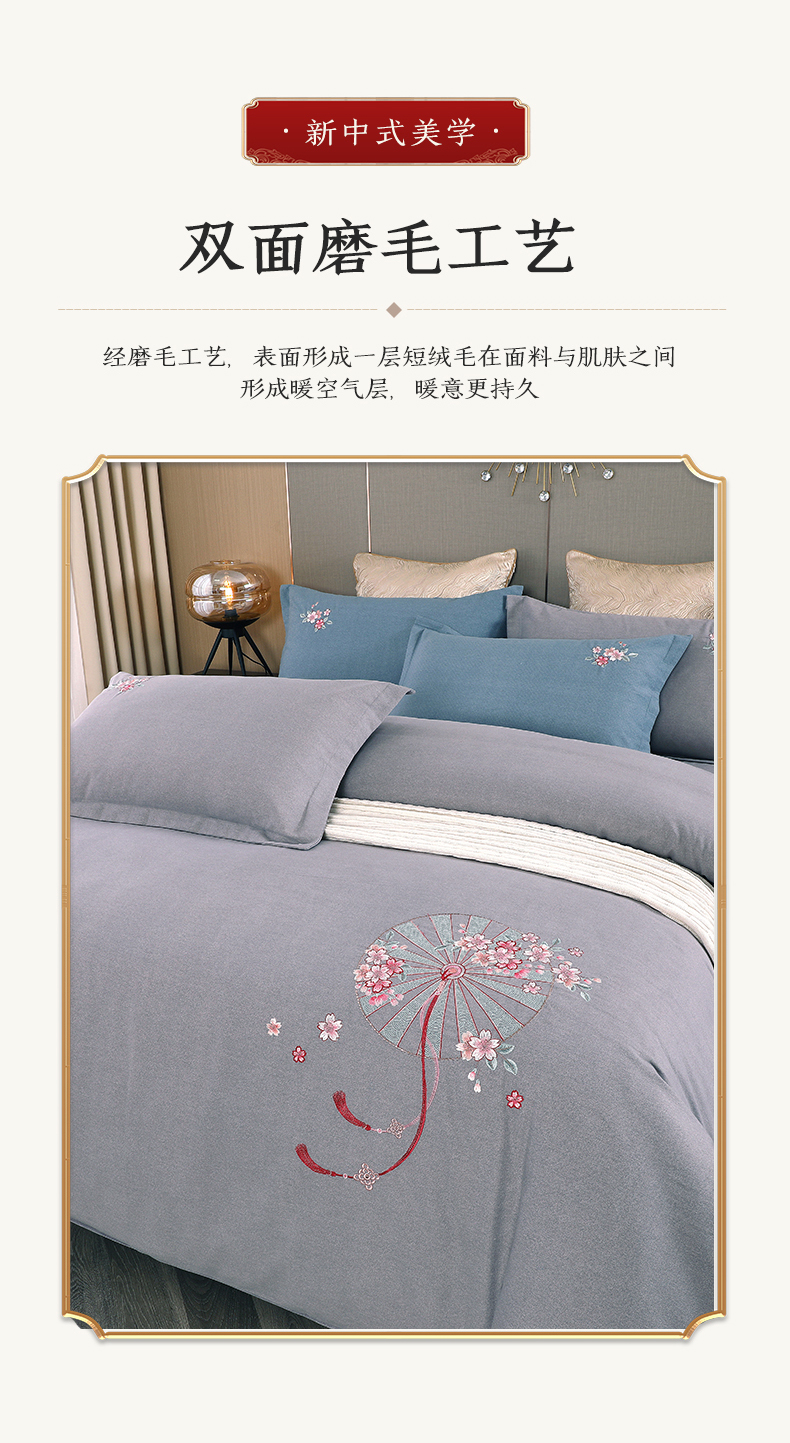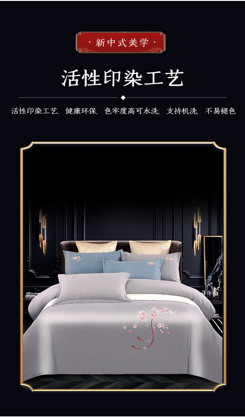 浩情国际婚庆供货中心 2026四季新品120S全棉斜纹加厚磨毛高端刺绣四件套 浪漫樱花-高级灰