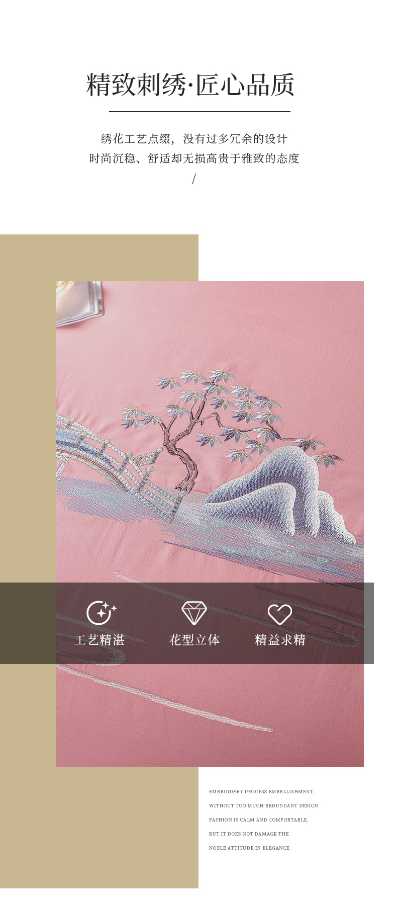 浩情国际婚庆供货中心 2026新品-100支全棉长绒棉磨毛高端刺绣系列四件套 山水情-豆沙