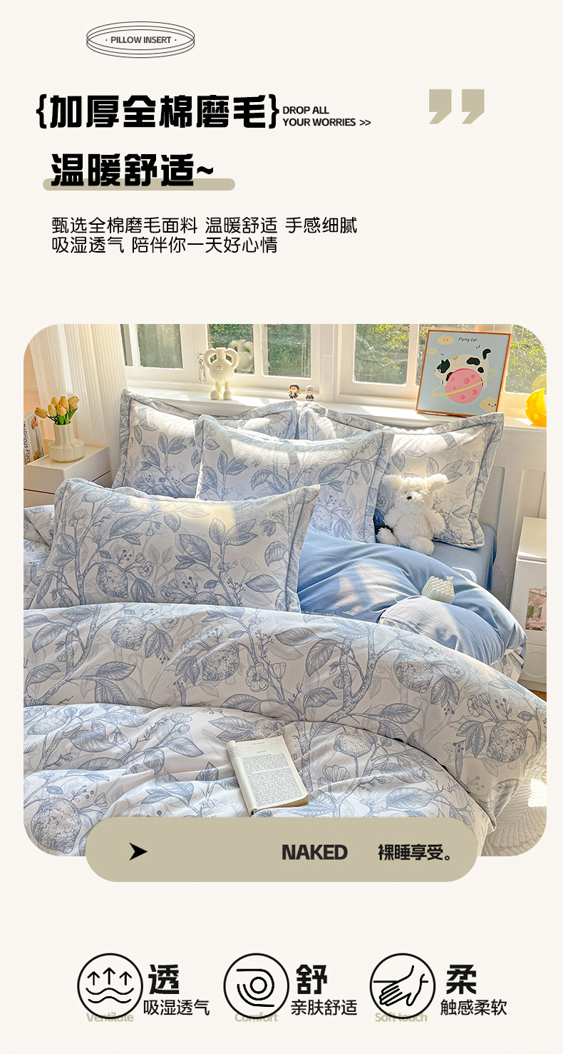 (总)曲之慕 2026新款全棉纯棉加厚喷气磨毛印花四件套,浅花悠悠,林见兔,波西米亚,花舞悠然,卡尼亚,克莱尔,米莱,米莱-兰,米莱-紫,向阳花开,南瓜屋,爱意浓,吾安心,登威熊,芬迪,花恬,花意,空间,晚秋,幽羽,费洛斯,浅香,秋叶,啬园,汀兰,云梦泽,艾格拉,蓝汐,蓝漾,萝莉,暖漾,绮梦,青枝语,秋韵,柔晖,絮语,紫韵,爱意花间,花蕊粉,四叶草,幽梦玉