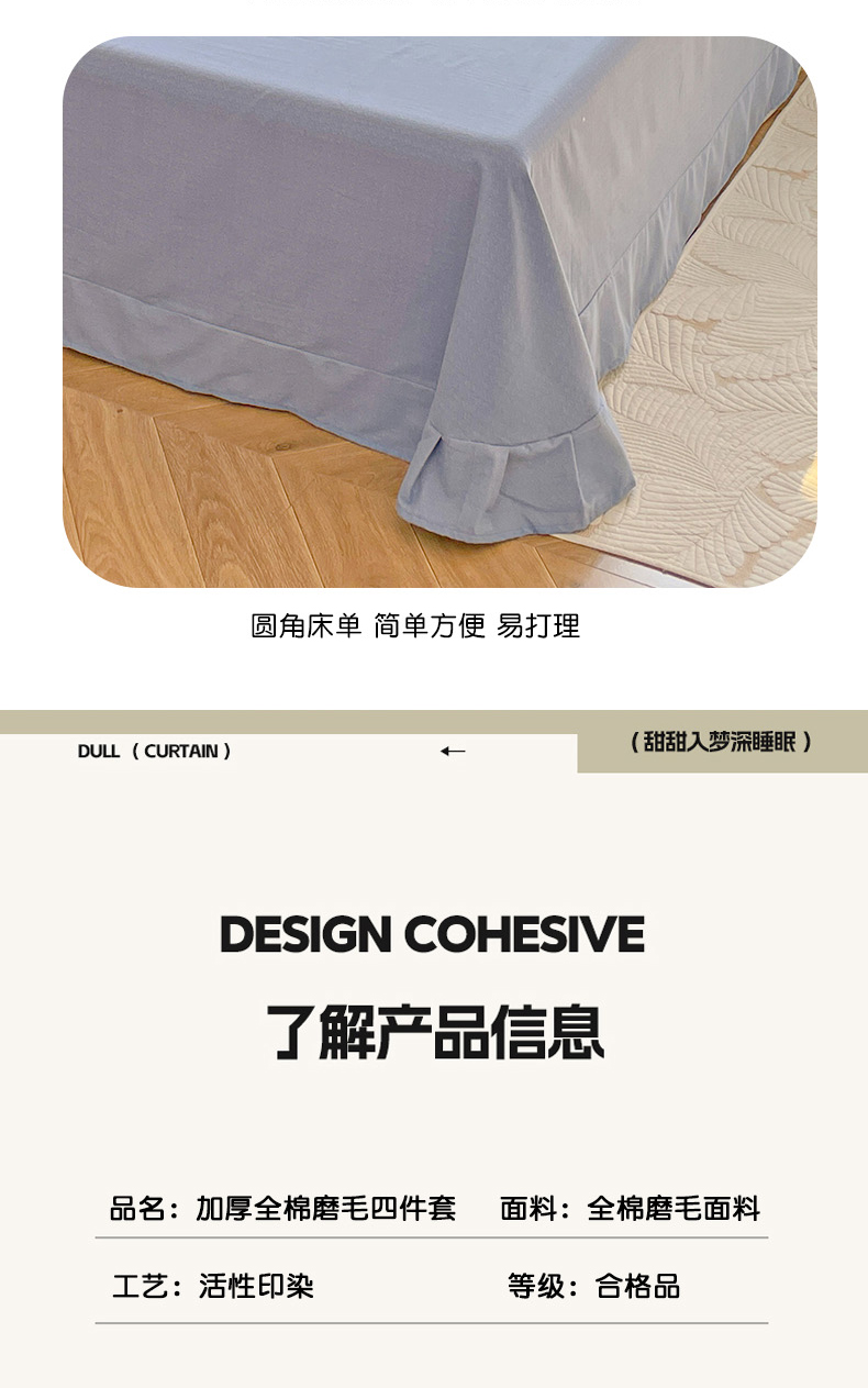 商品名称:曲之慕 2026新款全棉纯棉加厚喷气磨毛印花四件套 汀兰