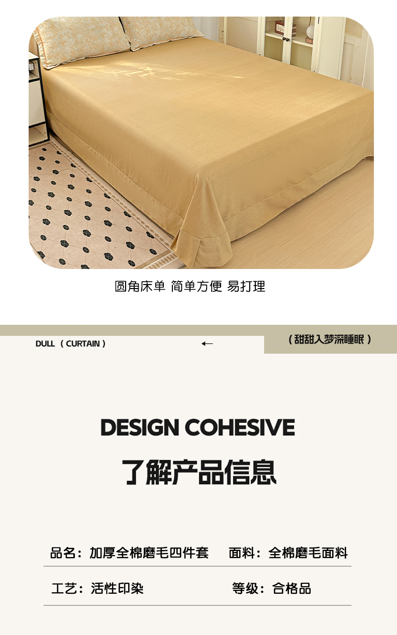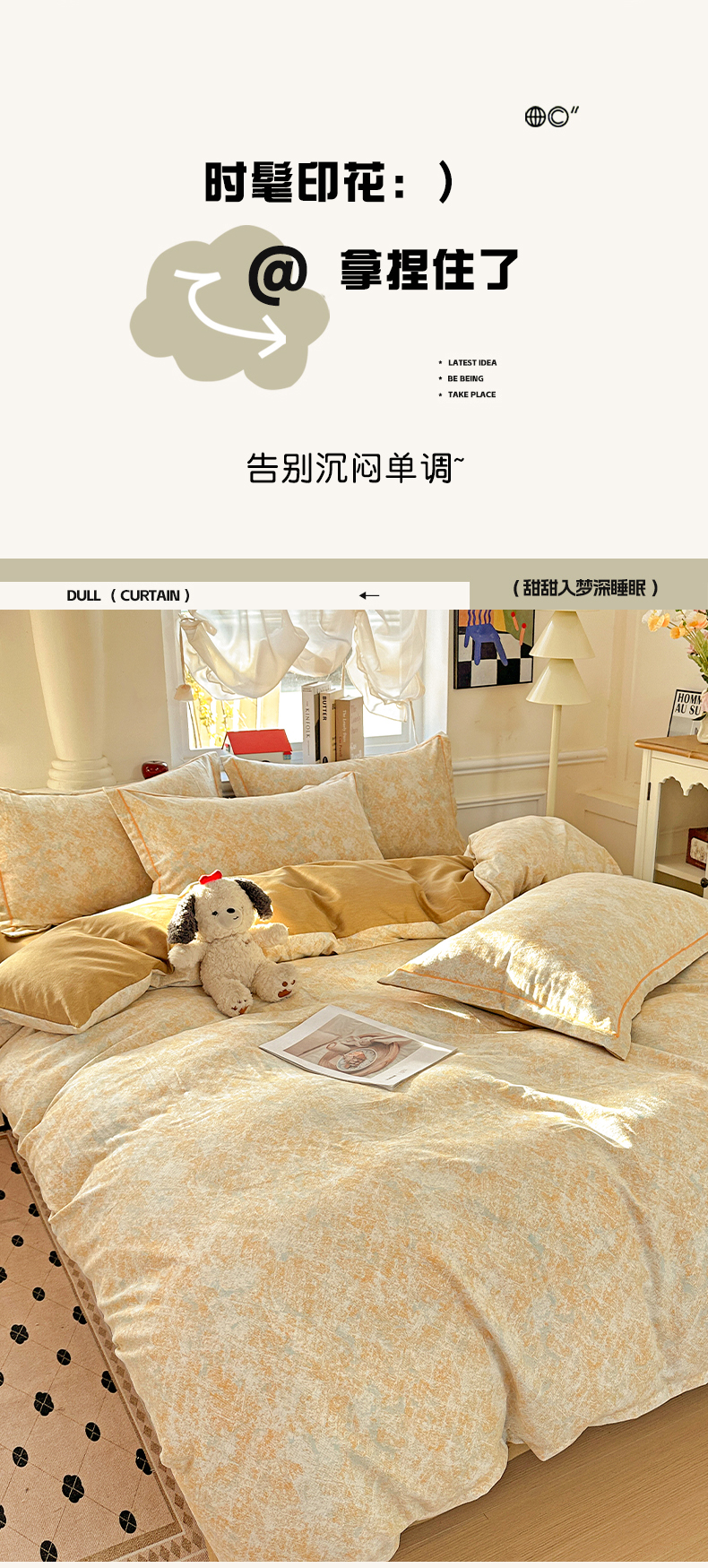 商品名称:曲之慕 2026新款全棉纯棉加厚喷气磨毛印花四件套 柔晖
