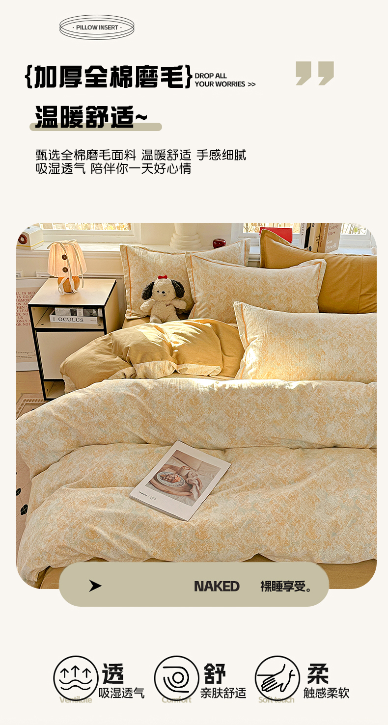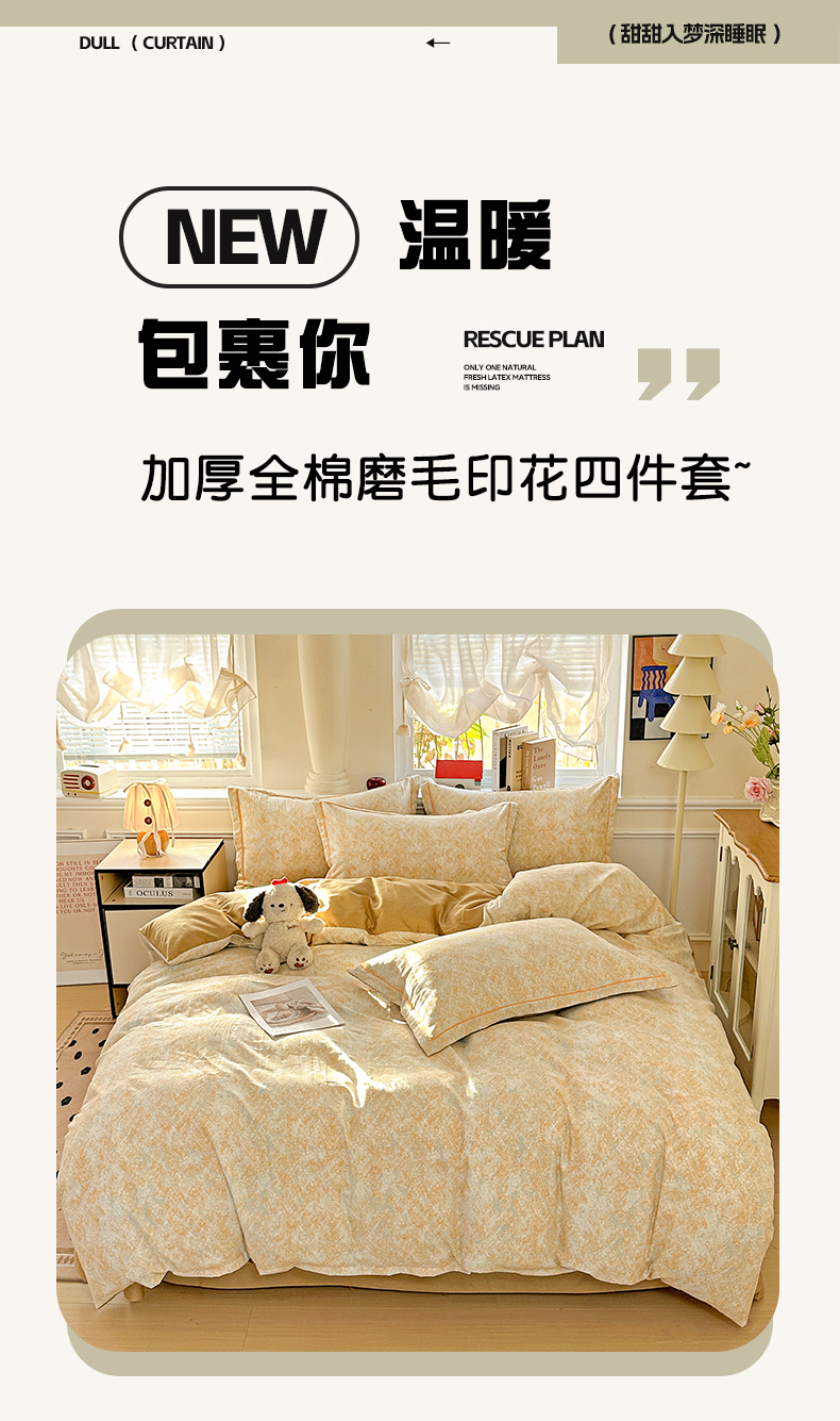 曲之慕 2026新款全棉纯棉加厚喷气磨毛印花四件套 柔晖