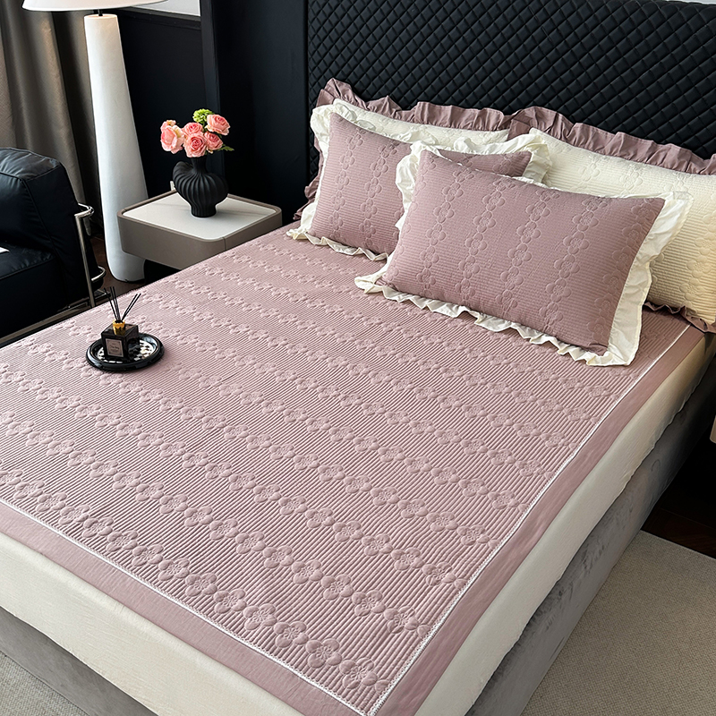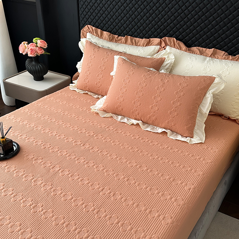 (总)紫碧螺家纺 2025新款牛奶绒绗绣裙式床盖三件套,暖黄,银灰,绿色,粉色,奶白,浅紫